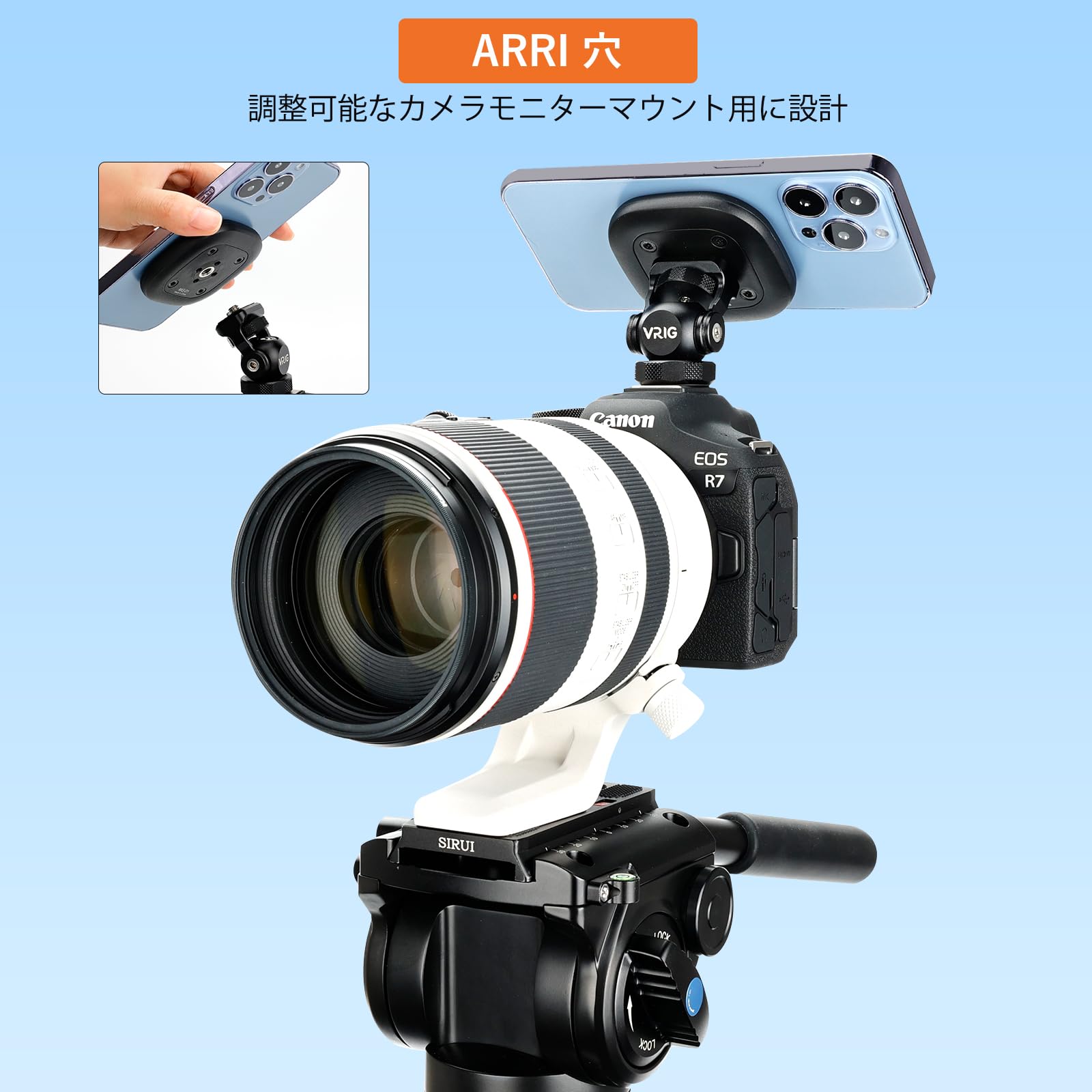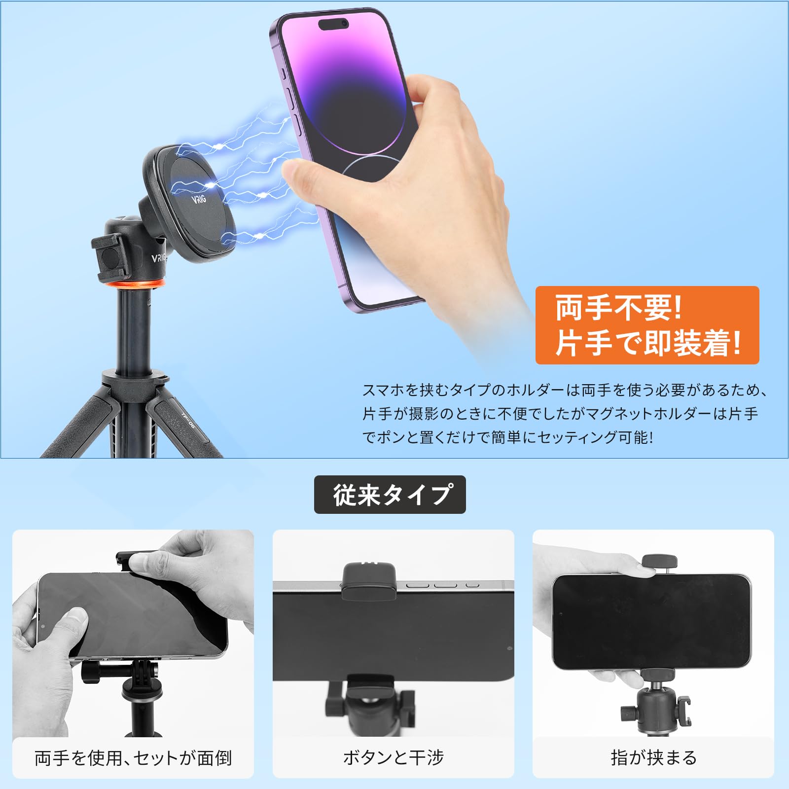 VRIG MG-01 スマホホルダー三脚 magsafe 三脚マウント 磁気マグネット式 1/4インチネジ穴 超強力磁力 三脚用アクセサリー Phone 14/13/12また他のAndroidスマホに対応 磁気リング付き