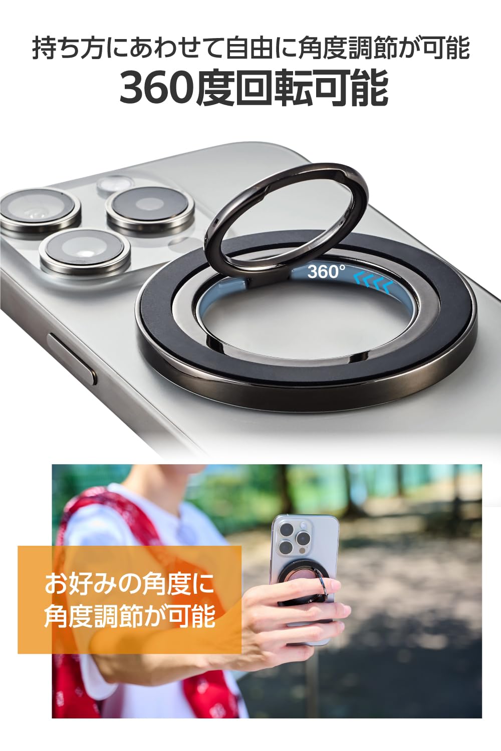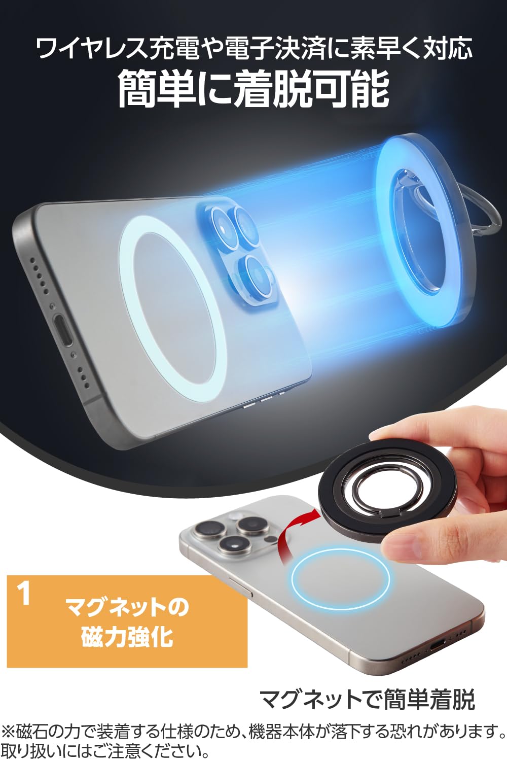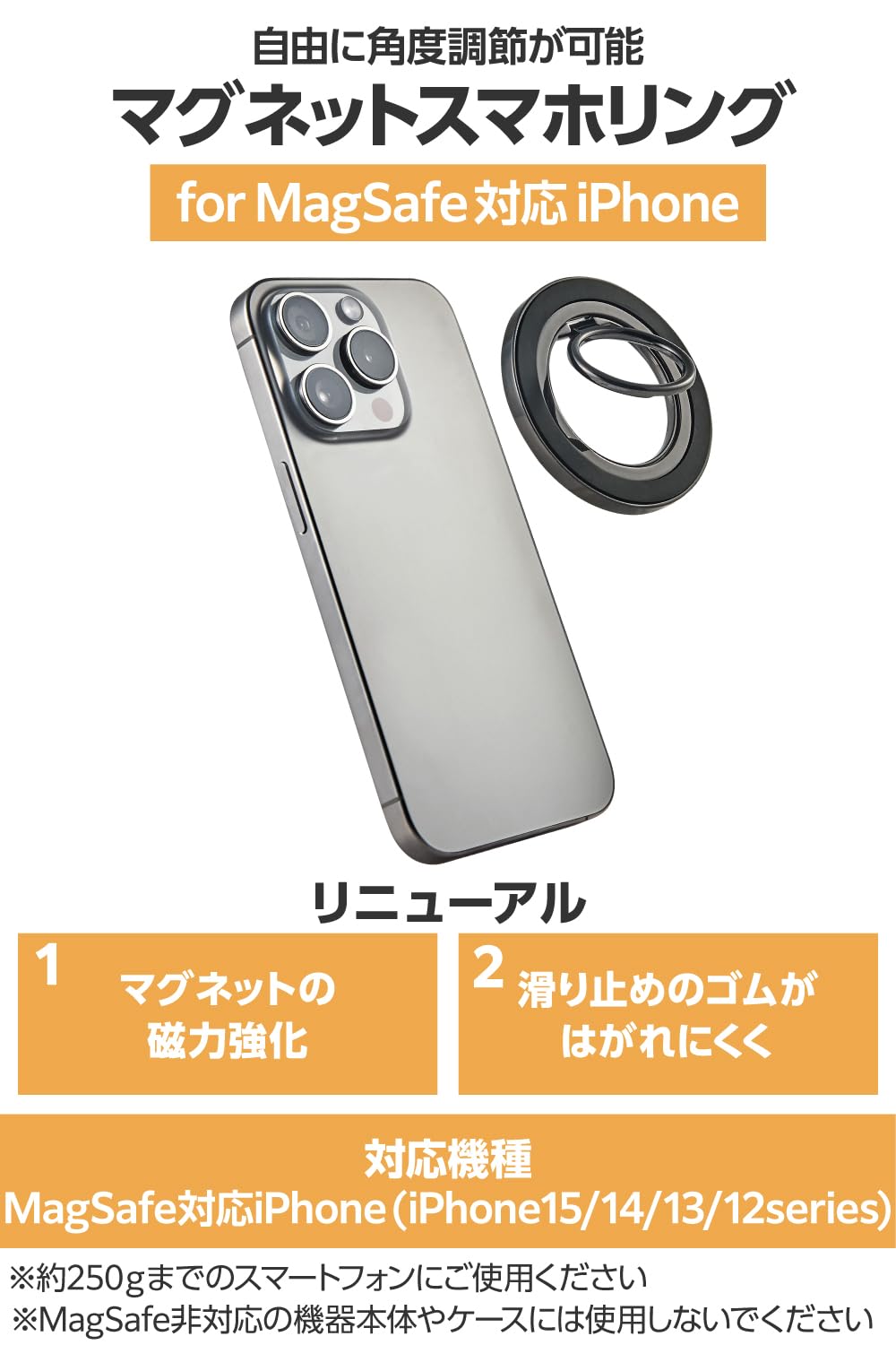 ■MagSafe対応iPhoneの背面に磁石の力で取り付けられる、マグネットスマホリングです。
