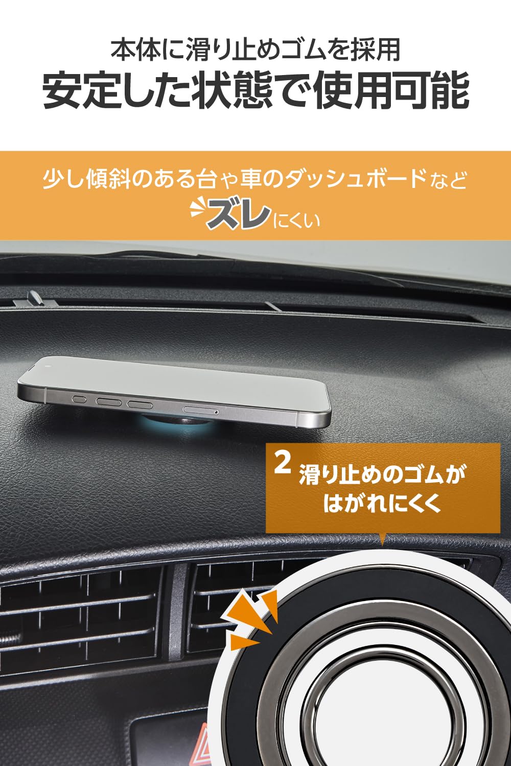 ■本体には滑り止めゴムを採用。少し傾斜のある台や車のダッシュボードなどに置いたときでも、安定した状態を保つことができます。