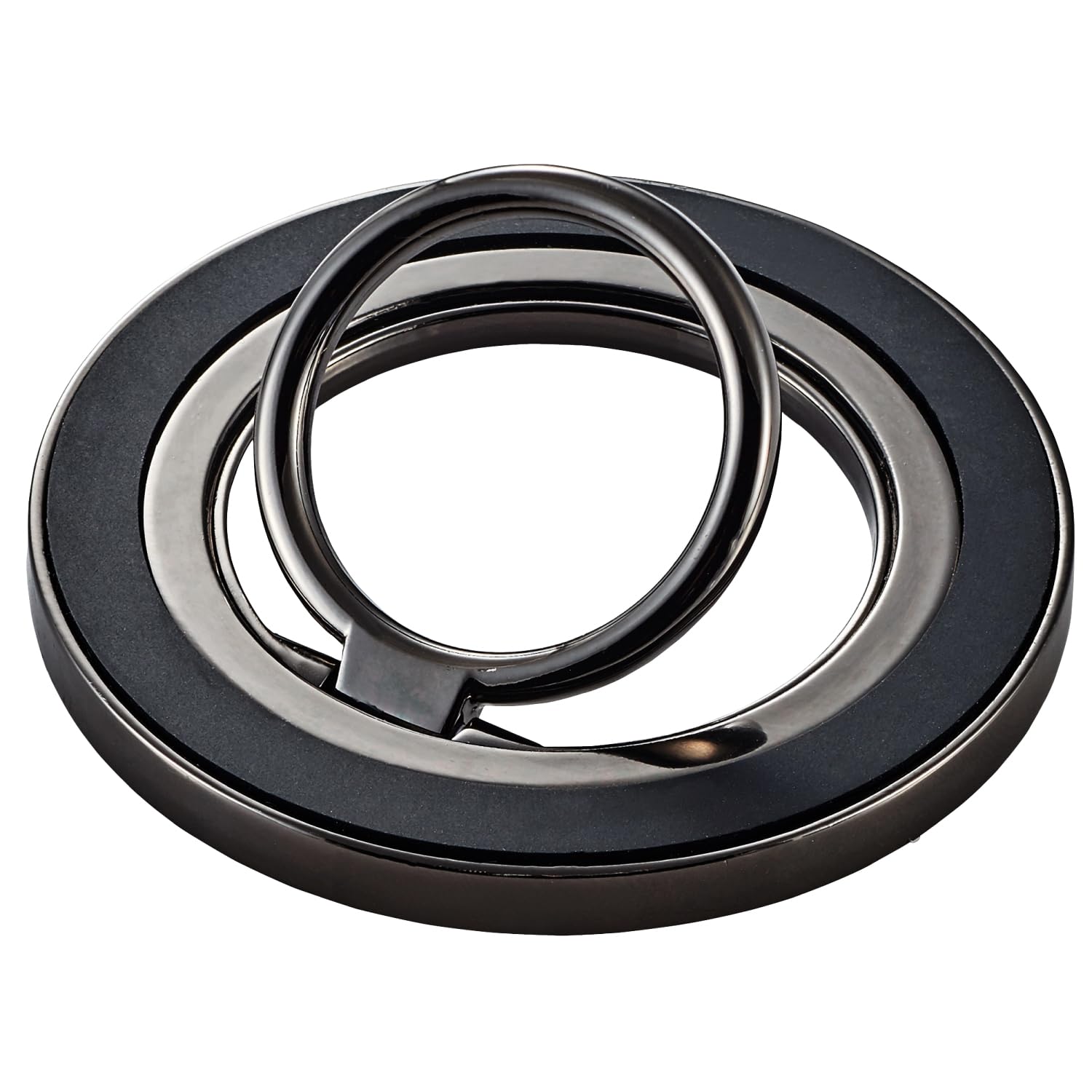エレコム MagSafe対応 スマホリング 360度回転 マグネット式 スマホスタンド 滑り止め付き 耐荷重800g 【リニューアル】 ブラック PWSTRMKM360BKN