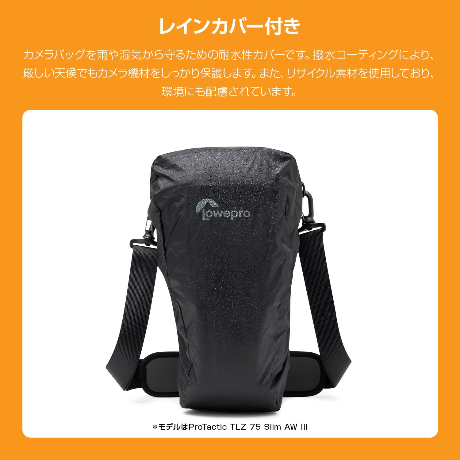 グリップ付きのミラーレス一眼と最大24-70mm F2.8レンズに対応し、レンズフード用の拡張機能があります。レンズケースなどのSlipLockアクセサリーと互換性があります。