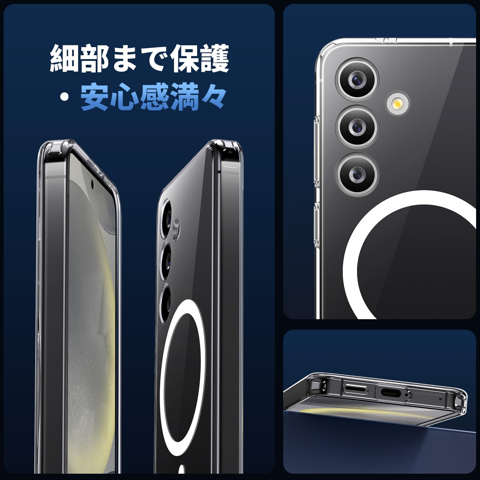 Aunote Galaxy S24 ケース Magsafeに対応 クリア SC-51E / SCG25 マグネット搭載 ワイヤレス充電 米軍MIL規格 耐衝撃 耐久性 全面保護 滑り止め 軽い ギャラクシー S24 カバー 透明