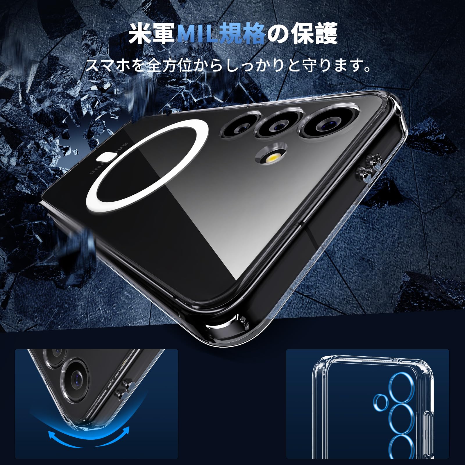 【特価】Aunote Galaxy S24 ケース Magsafeに対応 クリア SC-51E / SCG25 マグネット搭載 ワイヤレス充電 米軍MIL規格 耐衝撃 耐久性 全面保護 滑り止め 軽い ギャラクシー S24 カバー 透明 | GIGATERA
