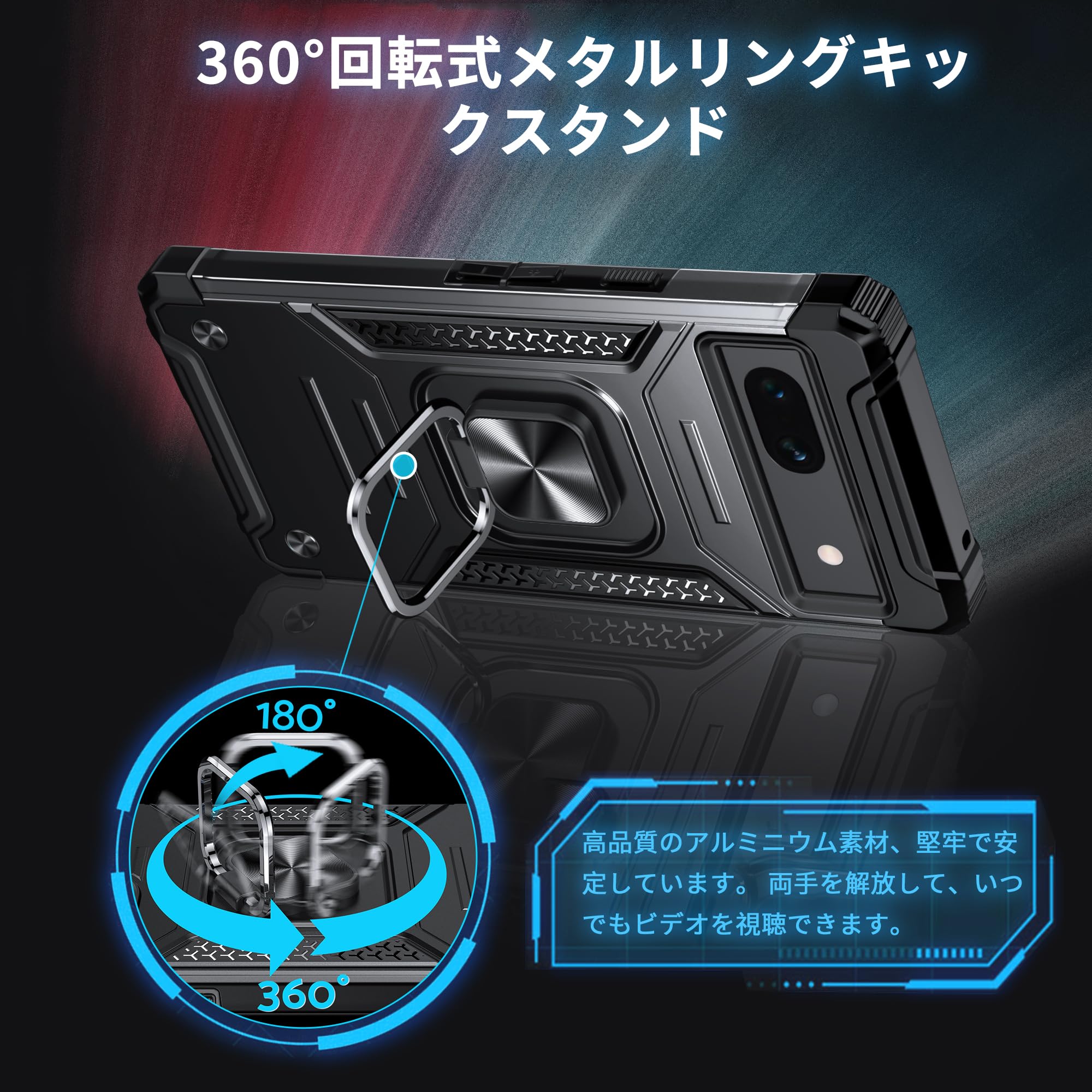 【数量限】DASFOND Google Pixel 7A ケース 360度回転メタルリングキックスタンド付き 米軍MIL 耐衝撃 強化PCハードバック 傷つけ防止 スマホケース グーグルピクセル7A カバー 6.1 インチ ブラック | GIGATERA