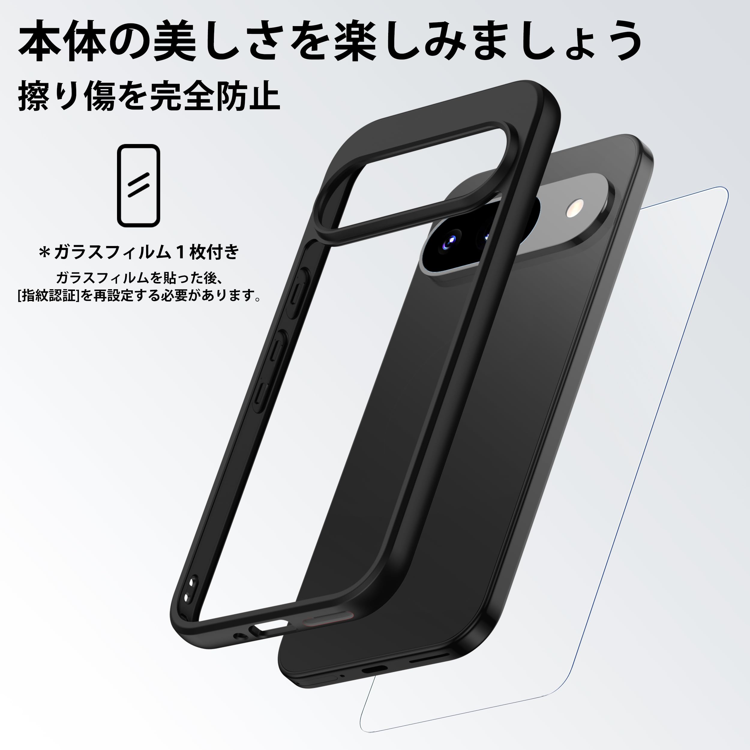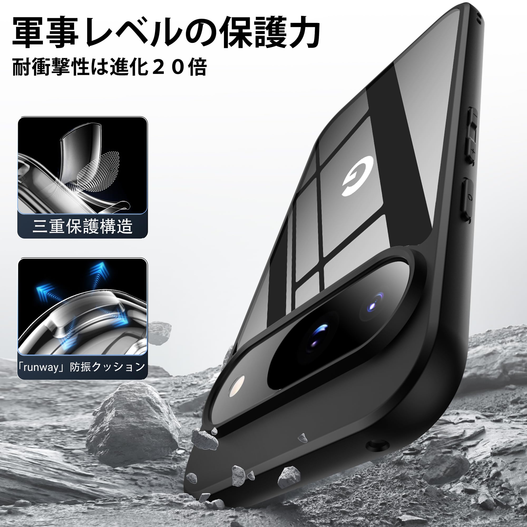 【人気】Google Pixel 9/9pro ケース ブラック 耐衝撃 ガラスフィルム保護付き pixel9ケース 米軍MIL規格 耐久性 黄変防止 薄型 ワイヤレス充電対応 スマホケース ストラップホール付き ピクセル9 カバー 黑 gogorelax | GIGATERA