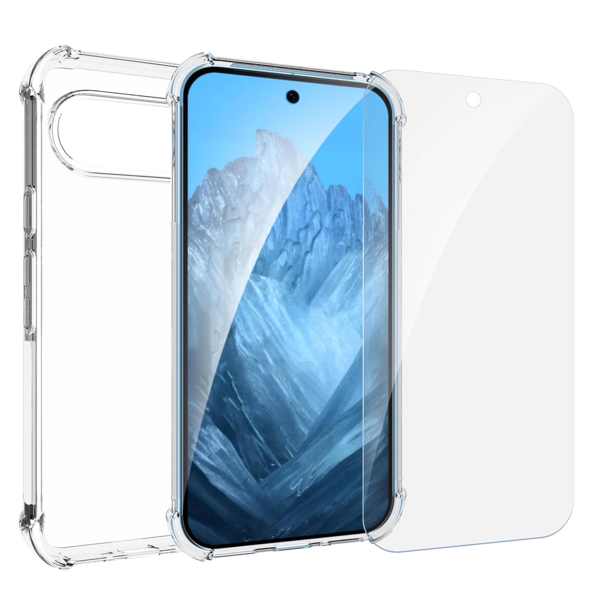 Suoman for Google Pixel 9ケース+ガラスフィルム TPUソフト素材カバー 9H 高精細スクリーン 保護フィルムfor Google Pixel 9保護ケース カバー