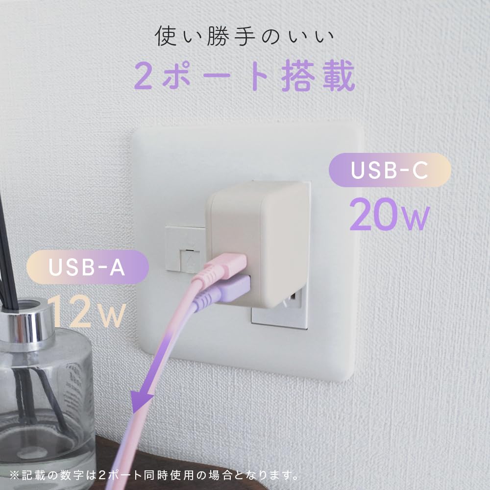 MOTTERU (モッテル) PD35W対応 AC充電器 USB-C×1ポート USB-A×1ポート 軽量 小型 合計最大32W iPhone Air 17 17Pro 16 15 iPad Macbook Airタブレット 各種Androidスマートフォン ラテグレージュ MOT-ACPD35WU1-GY