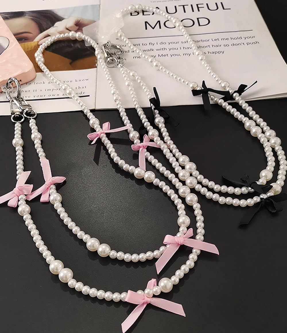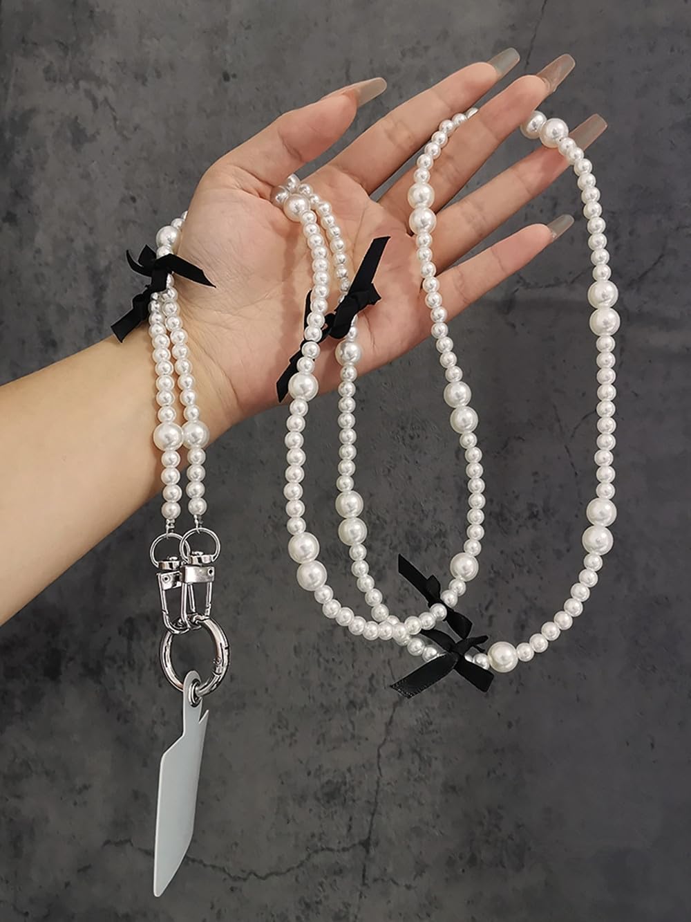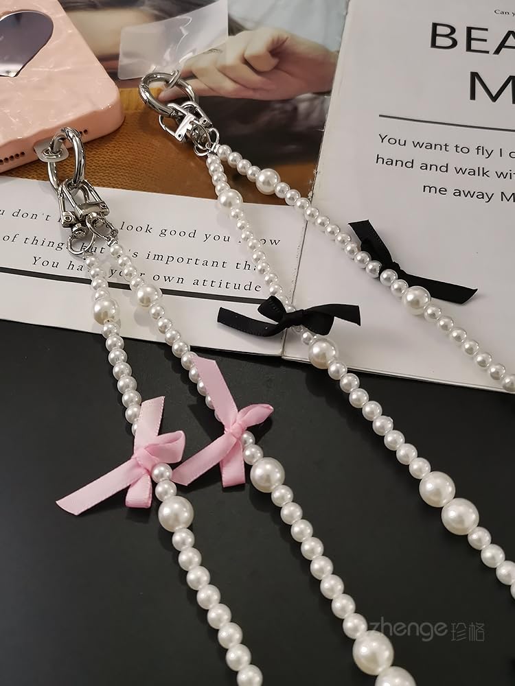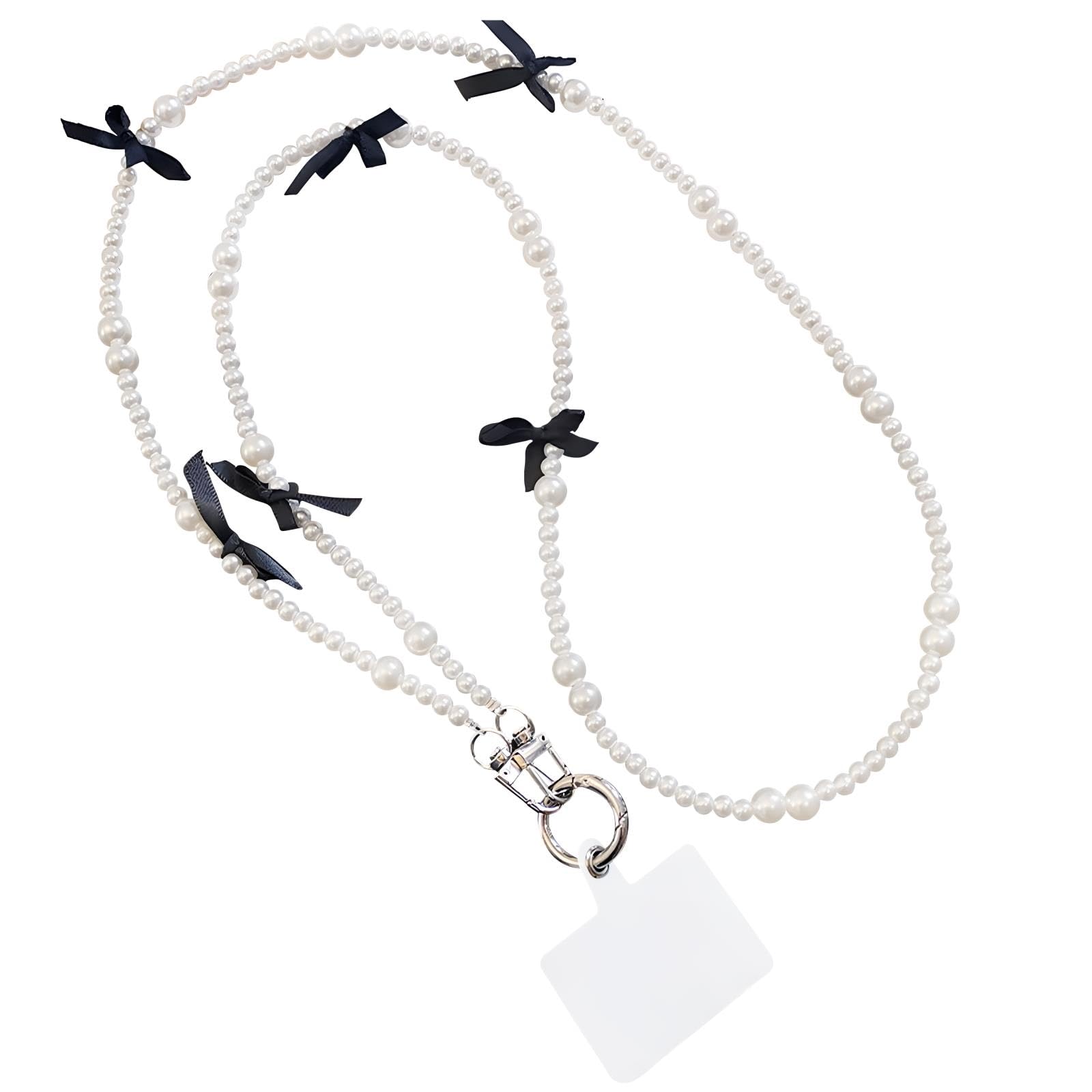 [CSILOVEE] スマホストラップ ネック パールストラップ 蝶結び 優雅で可愛い ショルダー ストラップ バッグチェーン 斜め掛け 首掛け・肩掛けストラップ 軽量 着脱簡単 全機種対応 携帯 落下防止 忘れ物防止 耐久性 韓国 おしゃれ タグ2枚付き