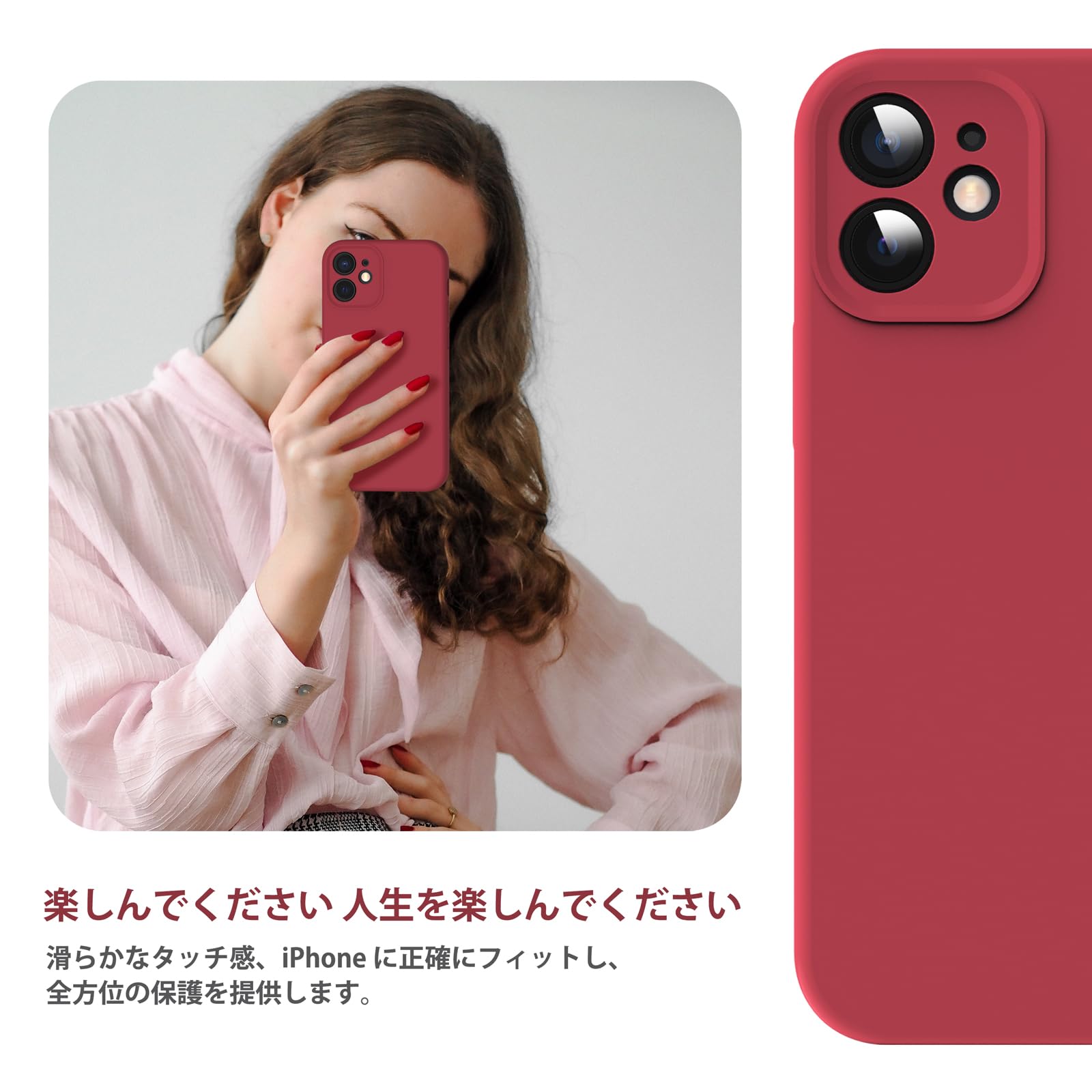 Supdeal iPhone 12 ケース 対応液体シリコン [耐衝撃] [柔軟TPU液体シリコン] [ソフトタッチ] [レンズの全面保護] [指紋防止] [落下防止] [滑り防止] 軽量 4層保護 アイフォン 12 スマホカバー 6.1インチ(レッド)