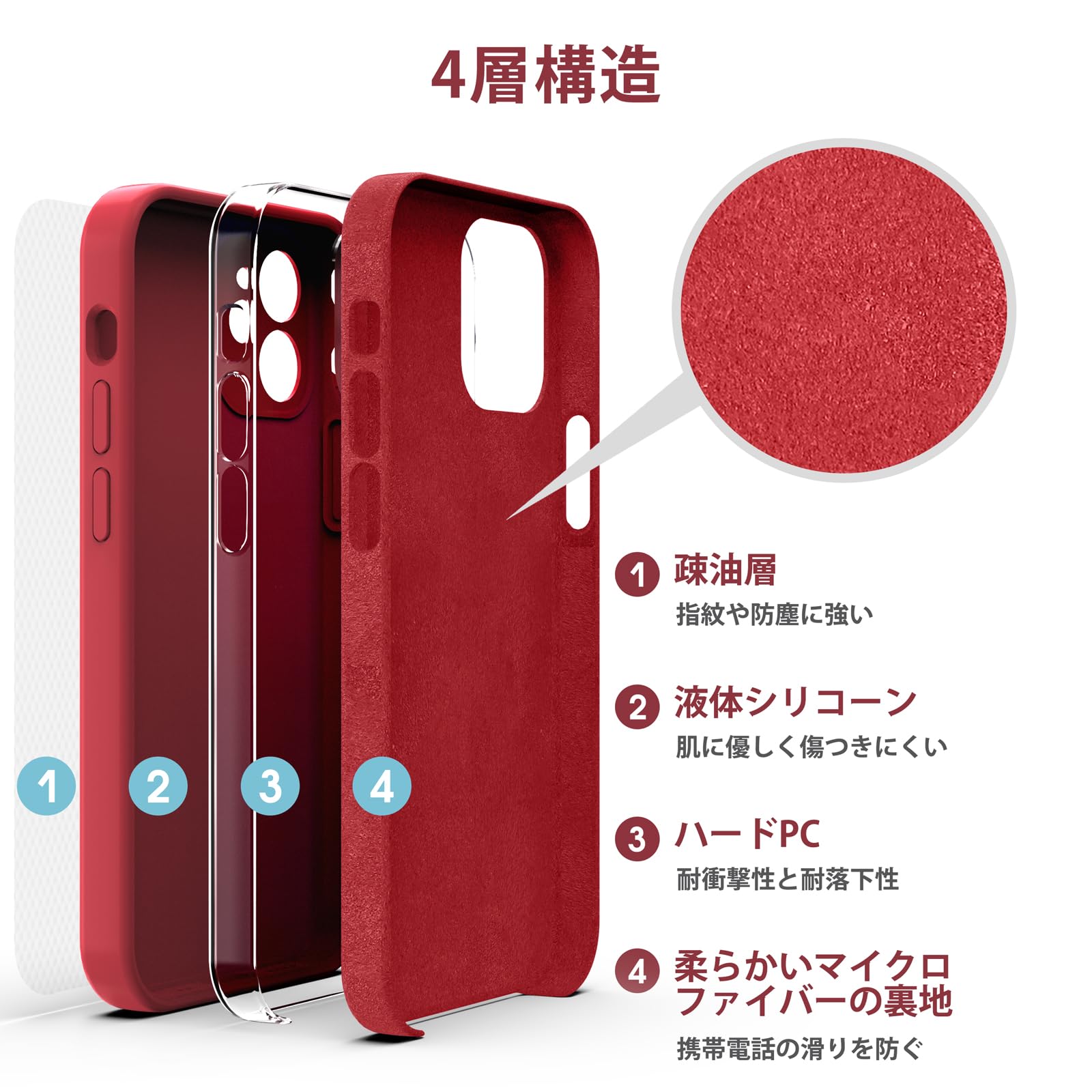 【耐衝撃・耐落下・傷防止】iPhone 12 液状シリコンケース、4層プロセス【液状シリコンケース】【硬質PCボード】【マイクロファイバーパッド】【撥油層】で携帯電話を摩耗や損傷から守ります。