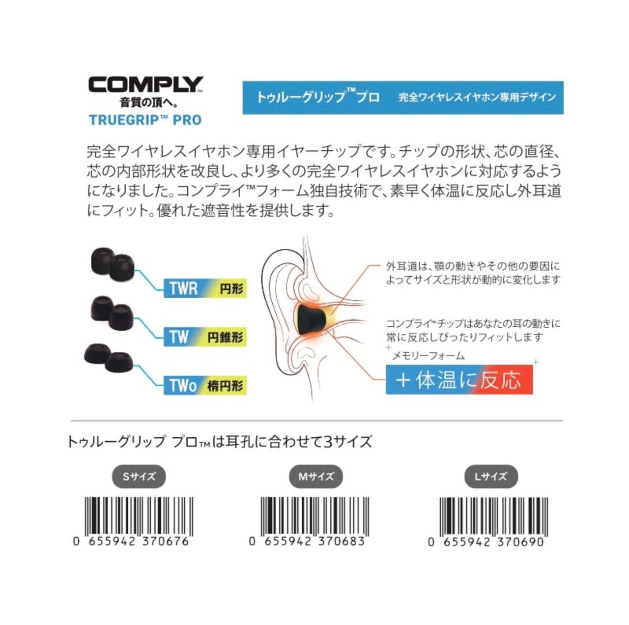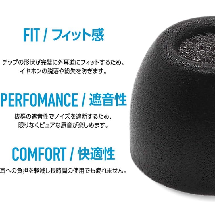 【快適な着用感】COMPLYイヤーピースは、体温に反応し外耳道の独特の形状に合わせて広がる形状記憶フォームで作られており、ダイナミックなフィット感を生み出し、装着感がアップします。COMPLYイヤーピースはシリコーンよりも優れたグリップを提供可能にします。