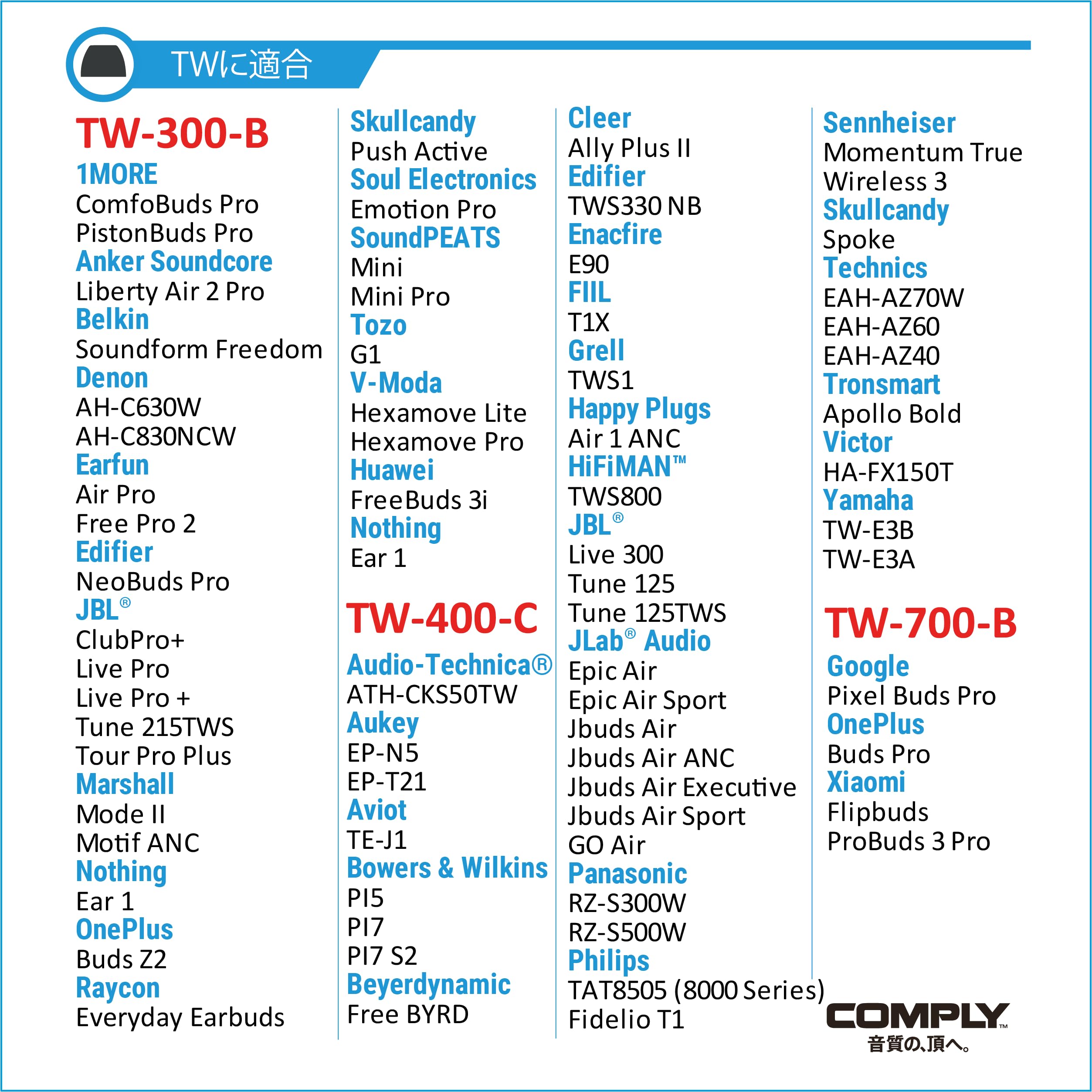 Complyコンプライ TW-400-C イヤーピース 1ペア 遮音性 フィット感 脱落防止 HC350-41501-01 S