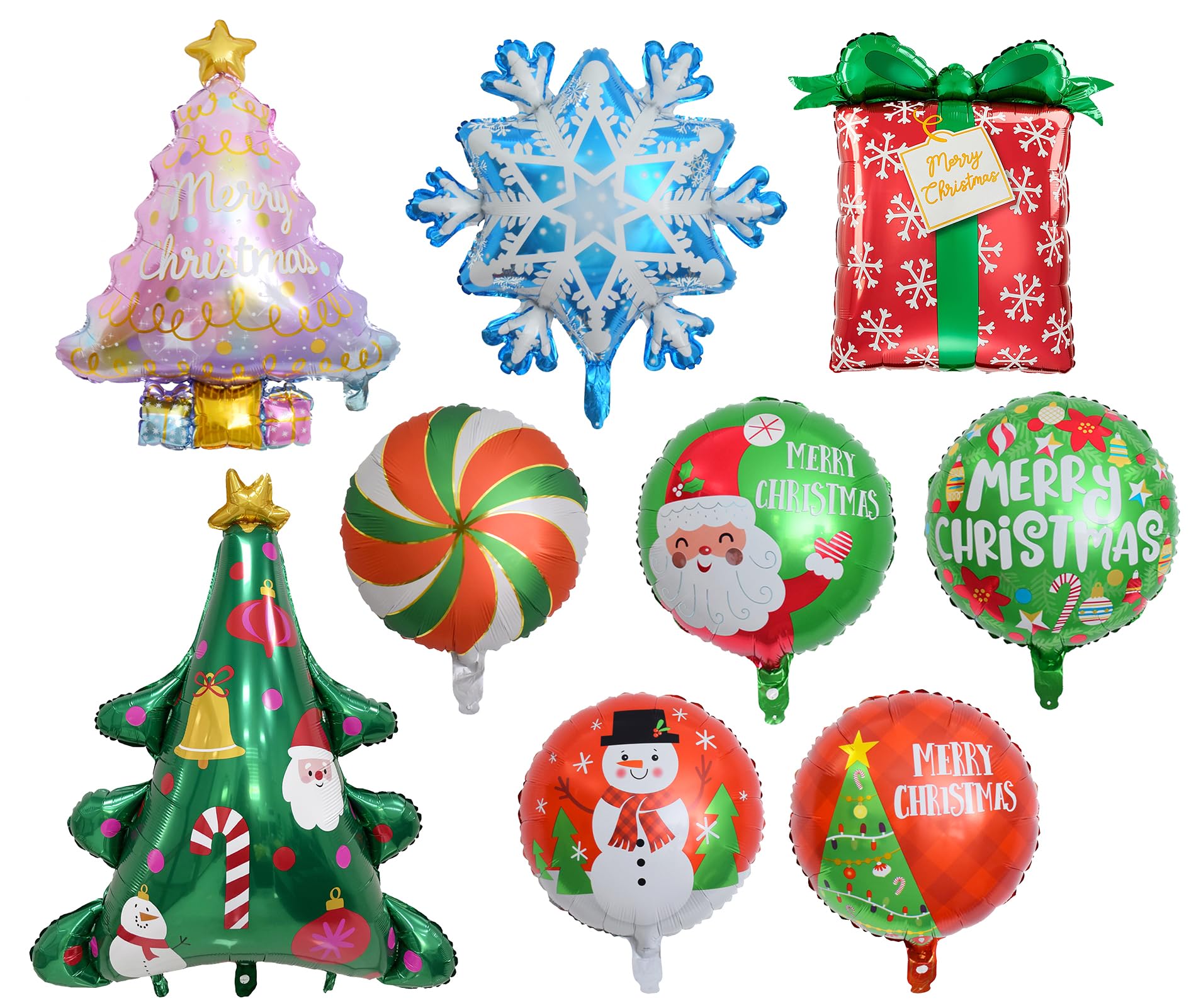【特価在庫】アルミバルーン 7枚セット クリスマス 飾り かわいい 誕生日 学園祭 装飾 オーナメント 写真撮影背景 豪華 巨大 風船 サンタさん 雪の結晶 クリスマスツリー クリスマス プレゼント 飾り付け デコレーション パーティーグッズ | GIGATERA