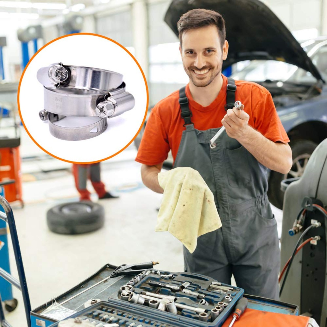 【在庫処分】leanking ホースバンド ホースクランプ 100個入り 8サイズあり φ8〜44mm対応 調整可能 304ステンレス製 ねじタイプ 強力オールステンレス 手締め用 固定用 配管用 ホース締め金 | GIGATERA