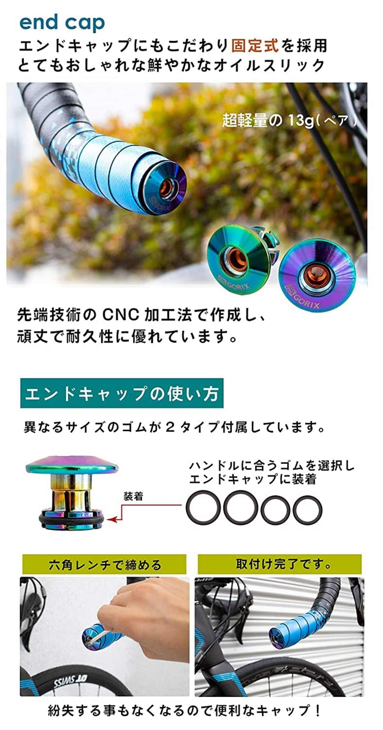 バーテープ交換は印象をがらりと変えるので自転車のカスタマイズに最適です。「握り心地はモチモチスベスベ」で2mm厚なので「ごつごつ」しない。【エンドキャップは固定式】で使い易いそして綺麗な【オイルスリックカラー】