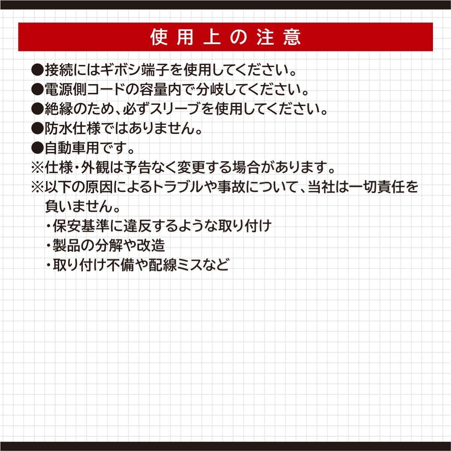 使用可能電力:DC12V車:140W以下/DC24V車:280W以下