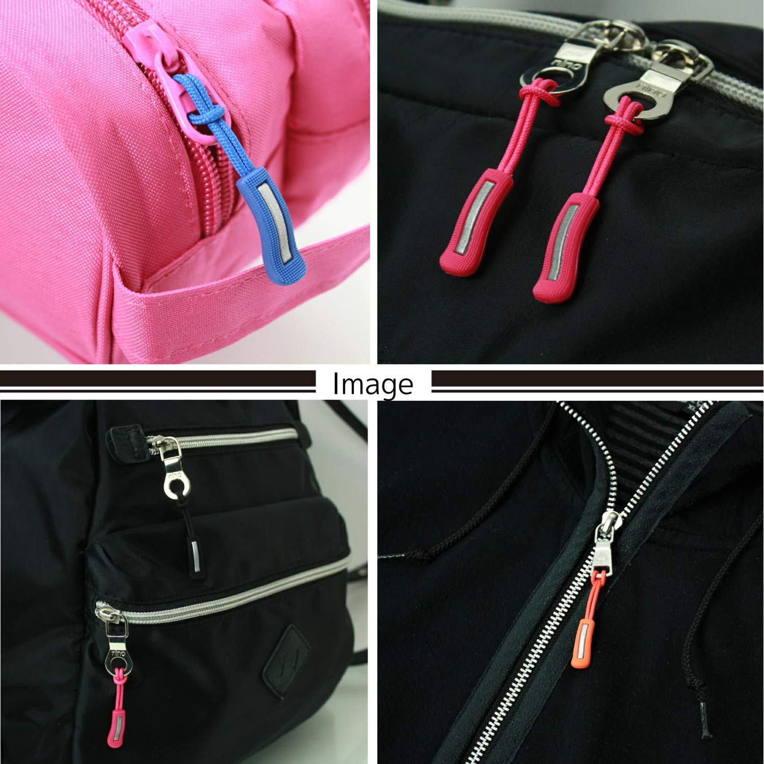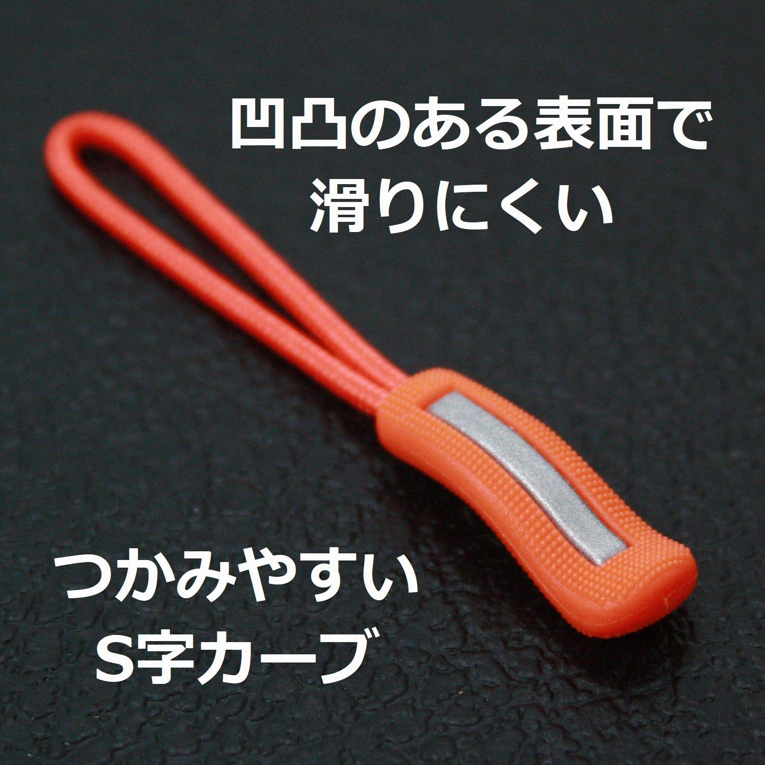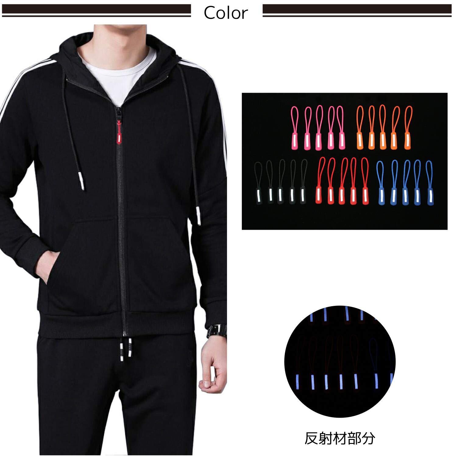 ジッパープル 反射材付き ファスナー チャック 楽々 開閉 取り付け簡単 つかみやすい ノンスリップ ジッパータブ プルコード 5カラー 各10本セット (ブラック)