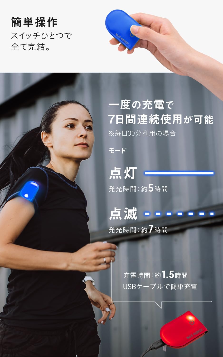 ?【濡れても安心の防滴仕様】ランニングやウォーキング最中に雨に濡れても問題ありません。発光部分(布地側)特殊な圧着技術により高い防水性があり、バッテリーボックス部分は防滴仕様になっております。※完全防水仕様ではないので水中での利用はお控えください。