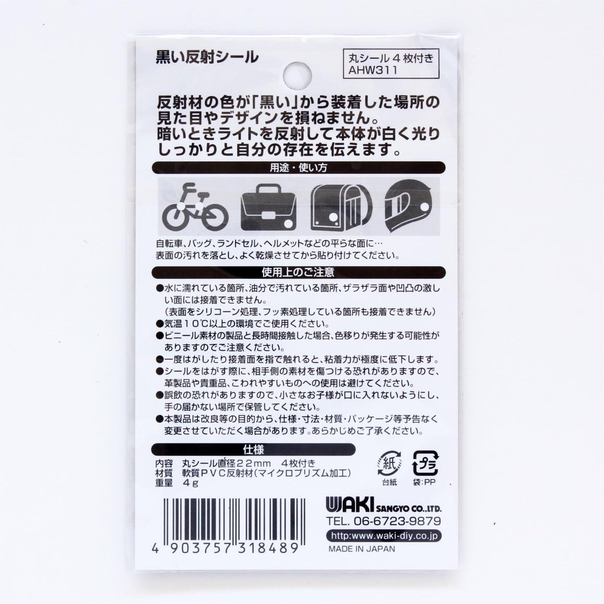 和気産業 黒い反射シール 丸シール 黒 直径22mm 自転車 ランドセル ヘルメット AHW311 4枚付き