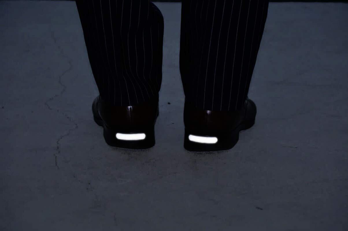 黒い靴用の反射シールです。強力な接着力でどんな靴にも貼りやすい。車のライトに反射して、視認性抜群です。黒色なので昼間は目立たず、夜には明るく反射します!