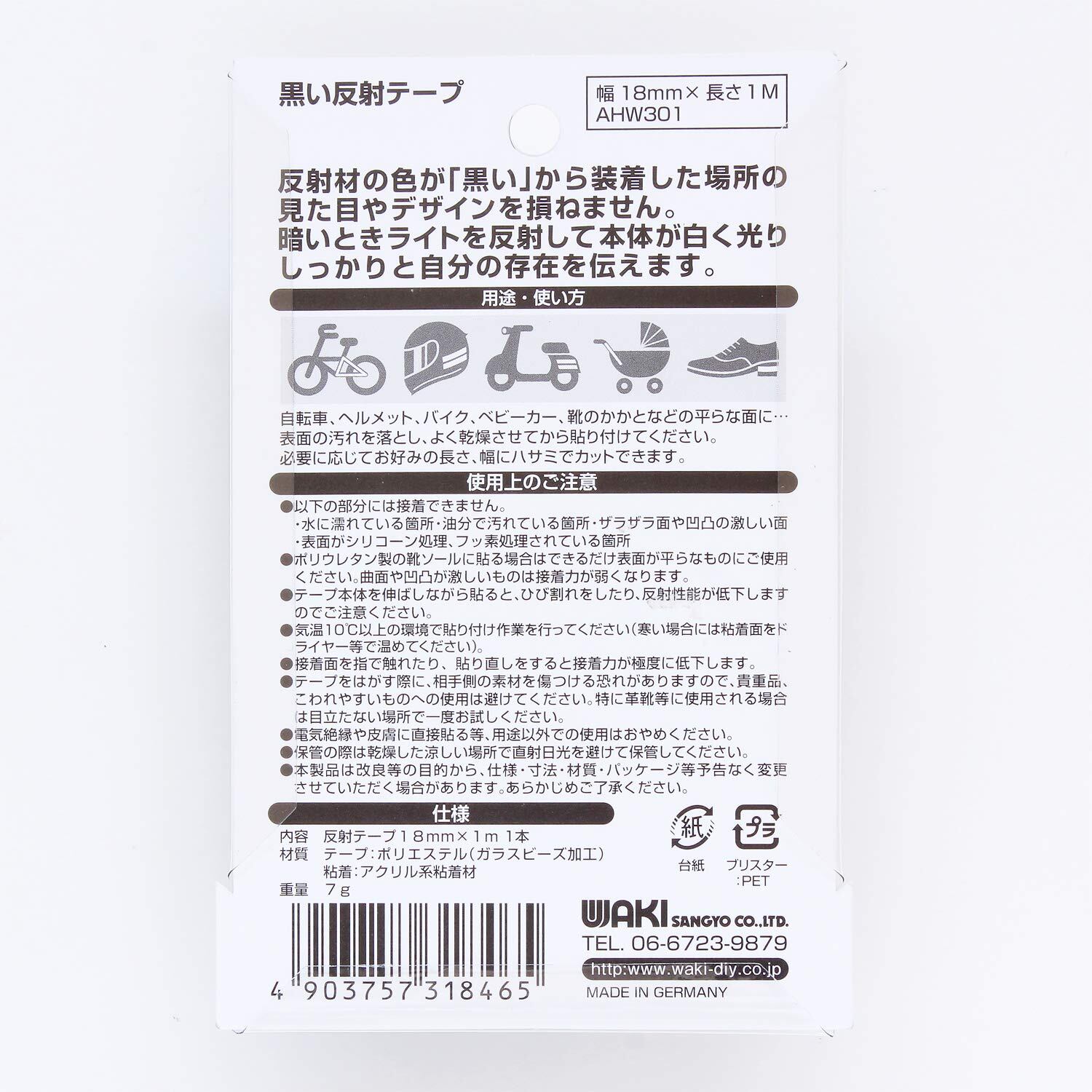和気産業 黒い反射テープ ブラック 幅18mmX長さ1m 黒 自転車 ヘルメット 看板 AHW301