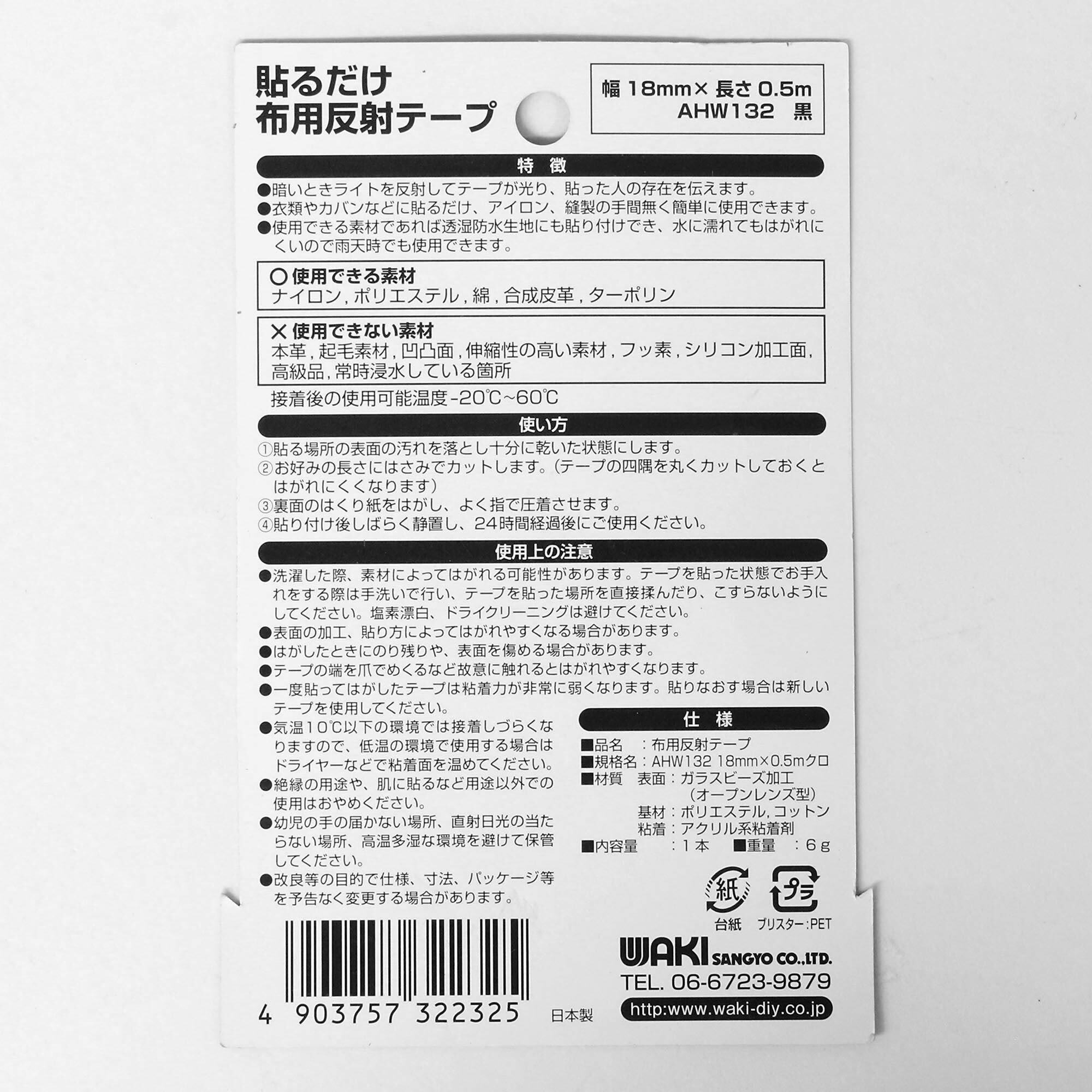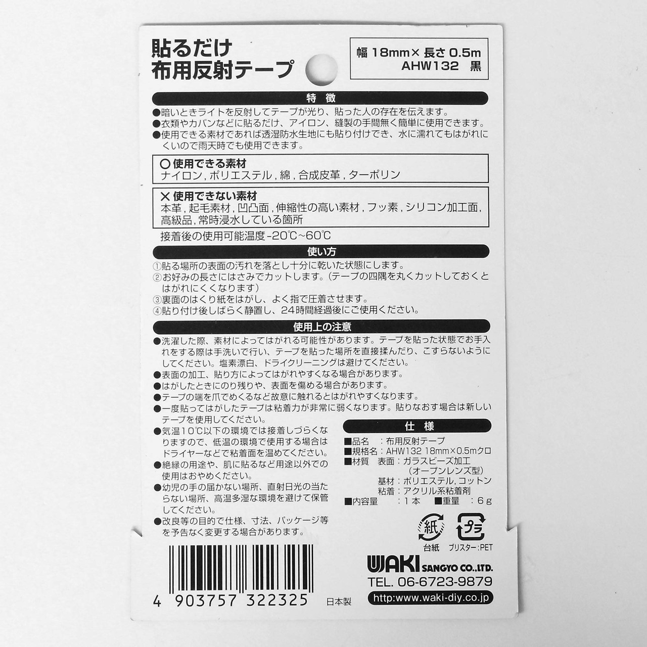 和気産業 布用反射テープ 黒 18mmX0.5m 自転車 ヘルメット 看板 AHW132