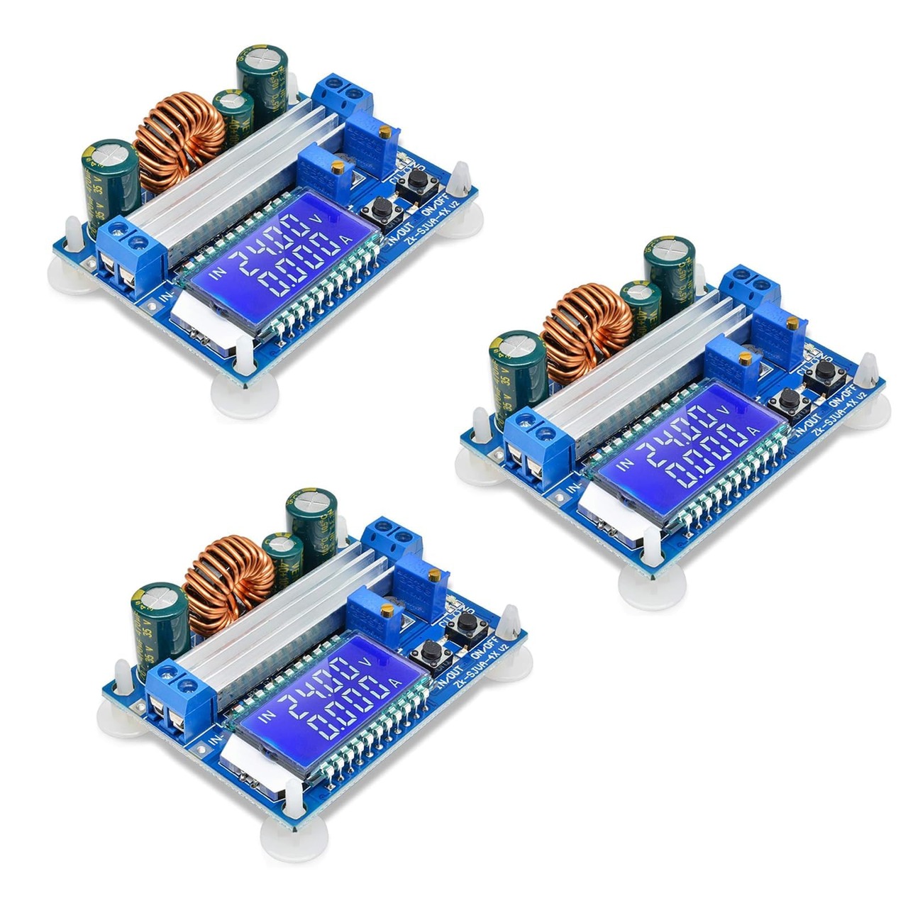 3個 昇降圧コンバータ 自動昇降圧ボード DiyStudio DC 5.5-30V 12V to DC 0.5-30V 5v 24v 調整可能な定電流電圧 4A 35W 電源モジュール デジタルLCDディスプレイ