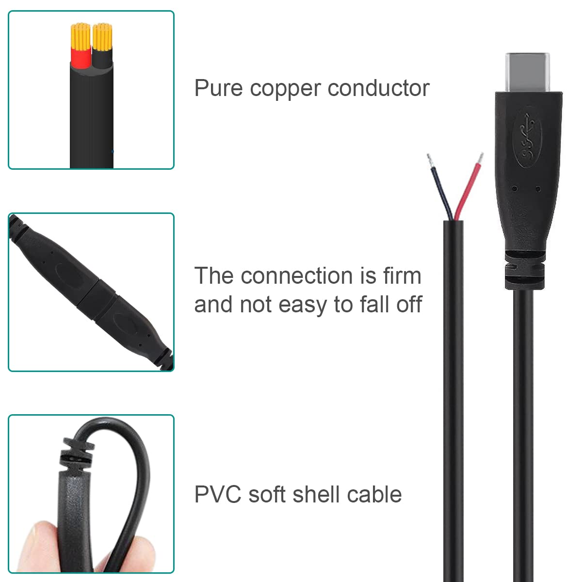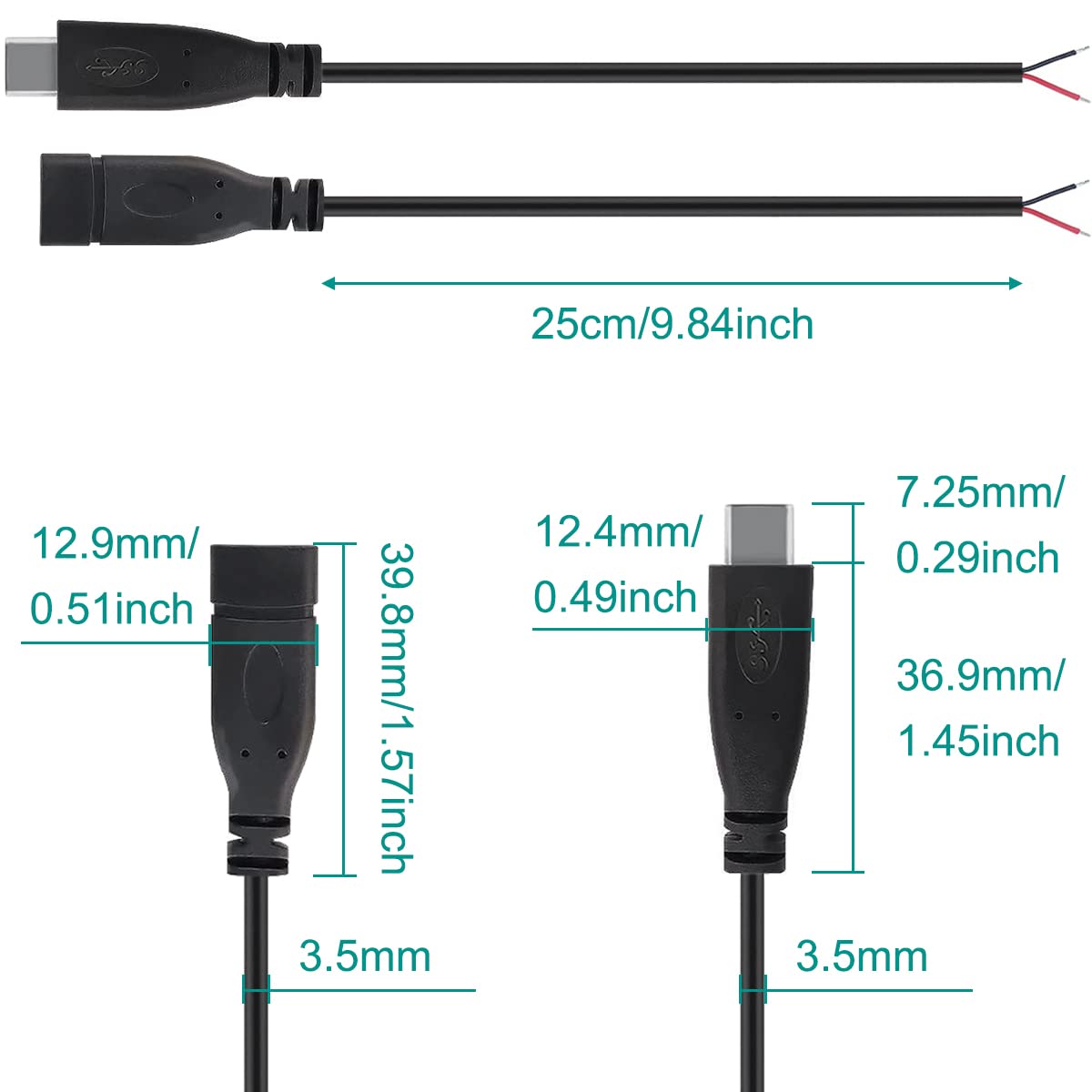 USB Cケーブル5V電源線 Type Cコネクタメスオス延長ケーブル USB C自作端子2ピン充電器プラグライン Arduino用とLED用、5 個USB Cオス + 5 個USB Cメス、8個