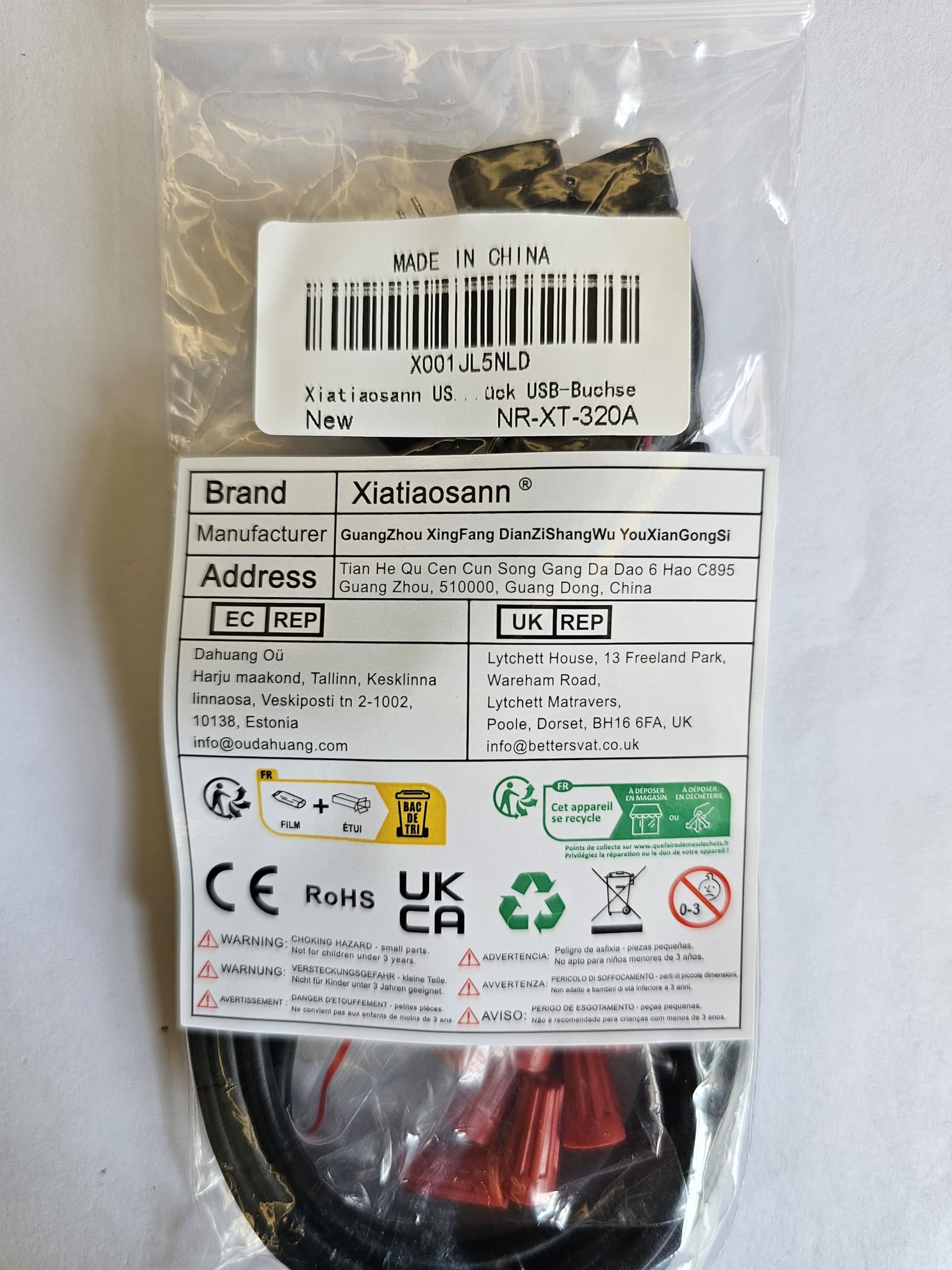 用途: USB 2.0 Type C メスソケット/オスプラグ。 赤線:プラス、黒線:マイナス。