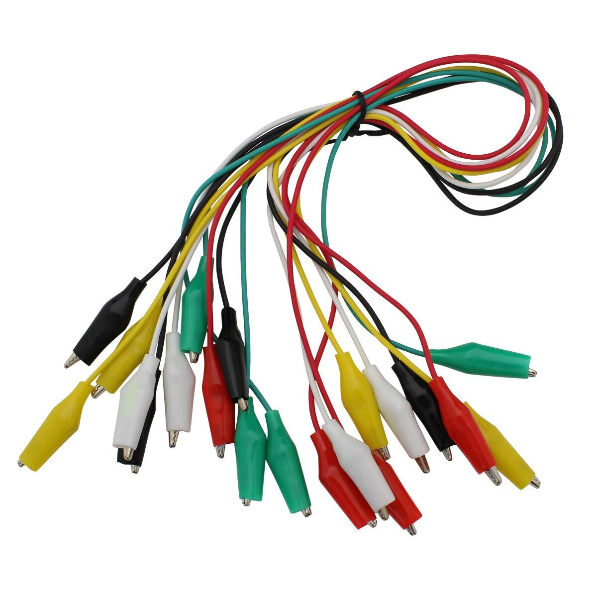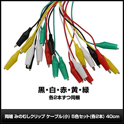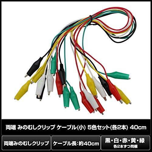 Kaito Denshi(海渡電子) 両端 みのむしクリップ ケーブル (小) 5色セット (黒・白・赤・黄・緑/各2本) ケーブル長40cm