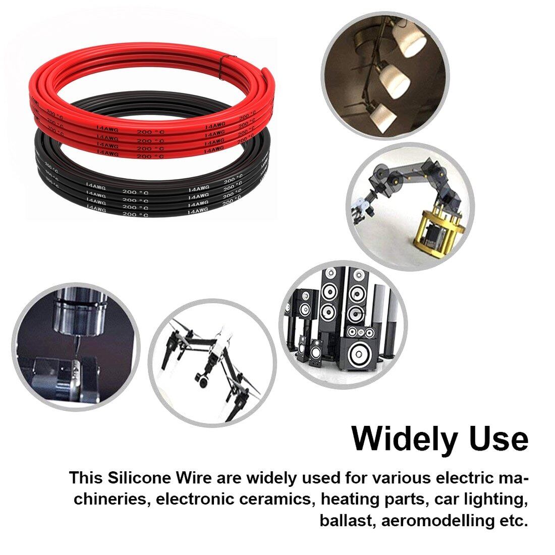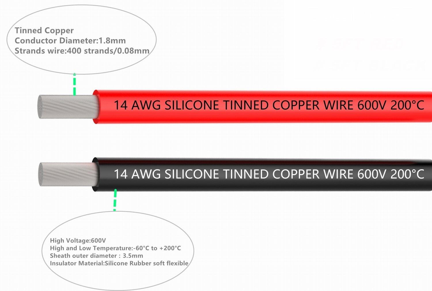 14線14AWGシリコンケーブル線[3m黒と3m赤] - 柔軟で柔軟な400ストランド0.08mm錫メッキ線高温抵抗