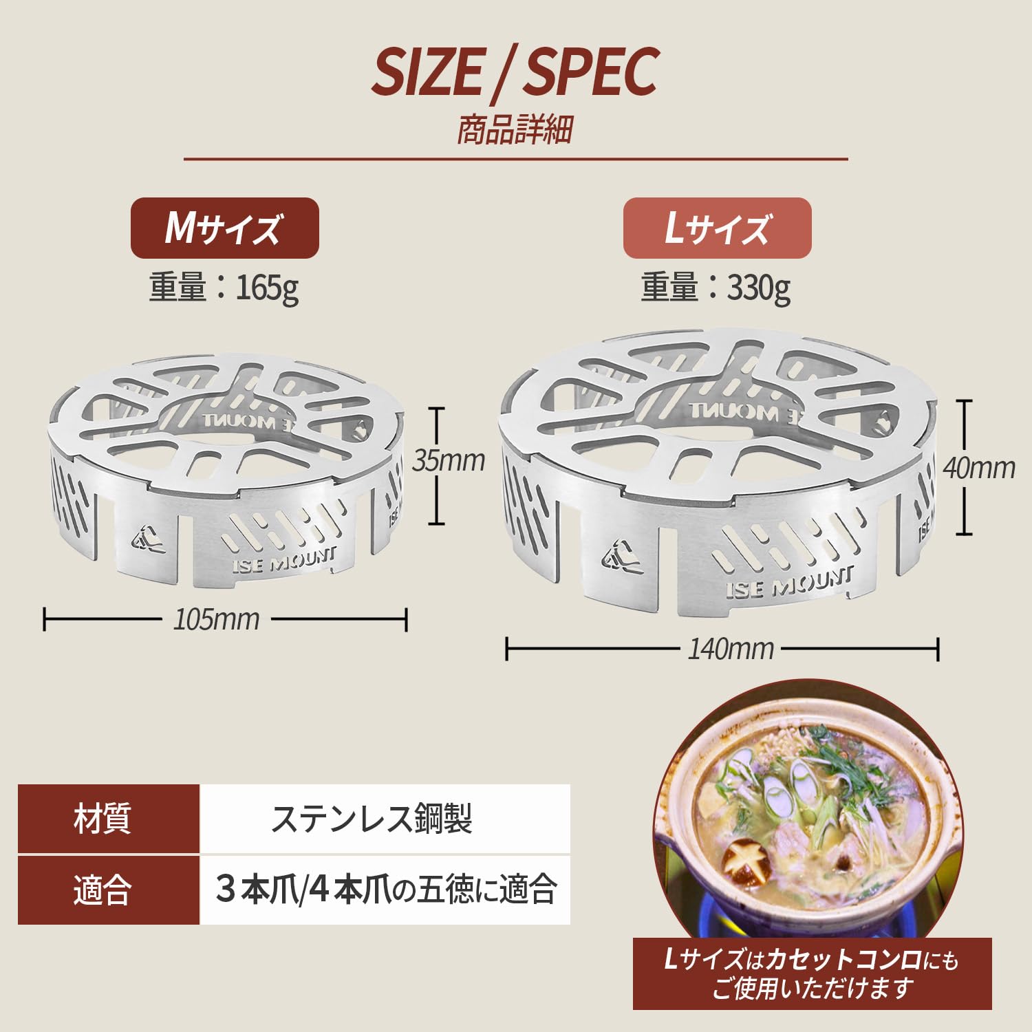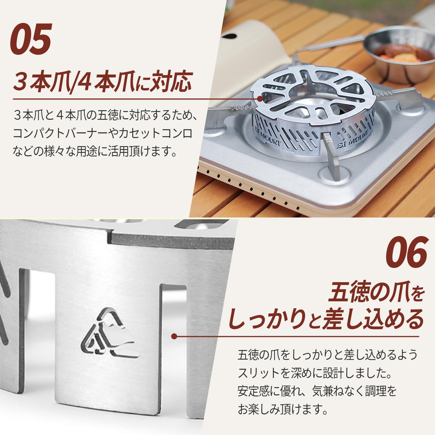 ?この五徳は、幅広いモデルのシングルバーナーに対応する汎用性の高さが特徴です。サイズが合うバーナーであれば使用していただけます。