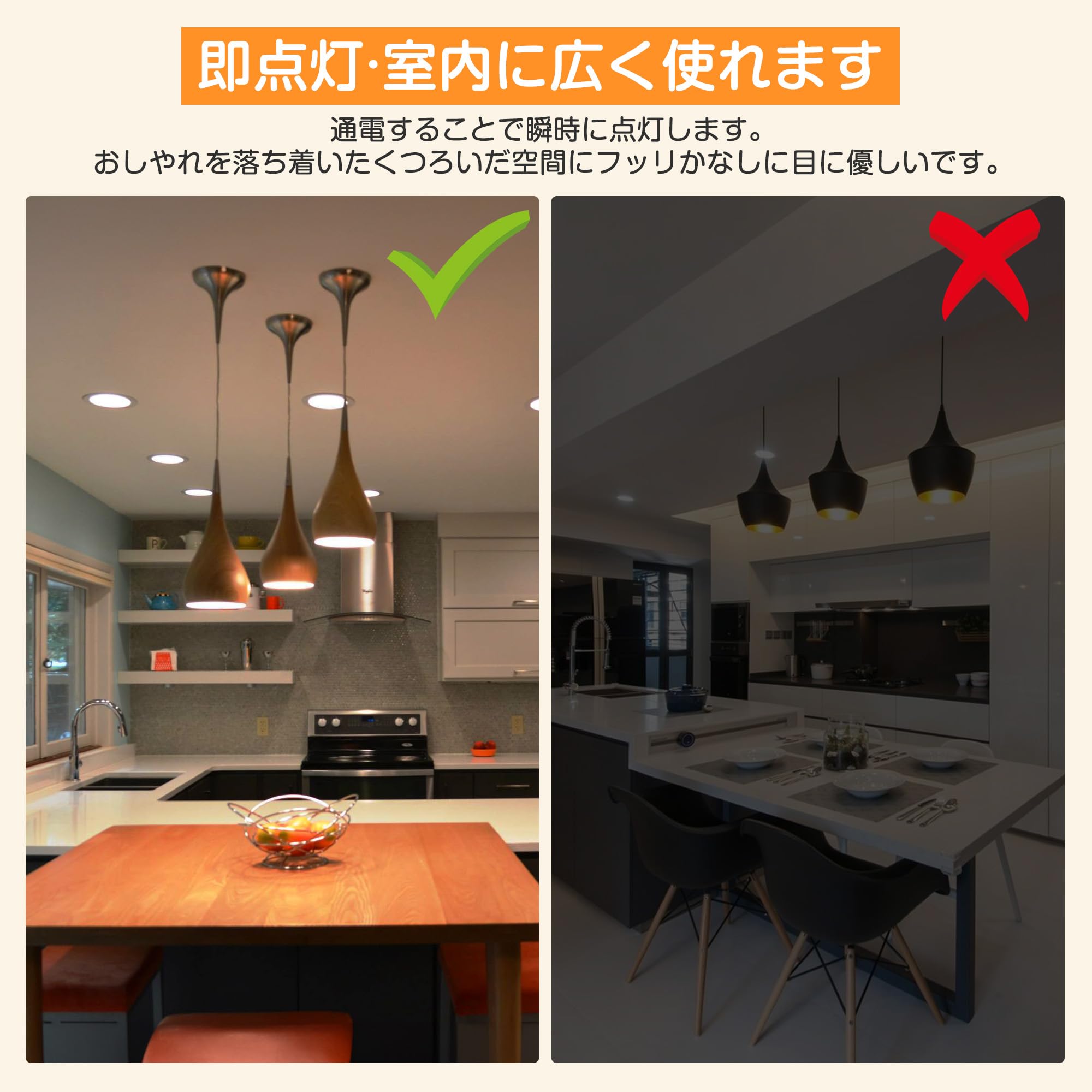 【即点灯・非調光】e11 led ハロゲン電球は通電することで瞬時に点灯します。繰り返しオン/オフしても寿命が短くならず。【ご注意】本製品はE11口金に、非調光型電球なので、調光機能のついた電球器具や回路、非常用照明器具などては使用しないでください。ご購入前にご了承ください。