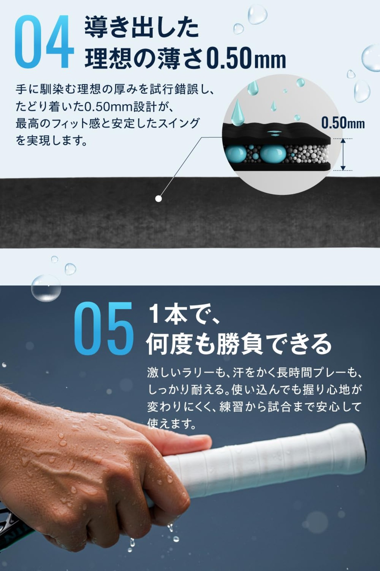 セミドライ設計 ? 粘着と吸汗のバランスで滑りを防止