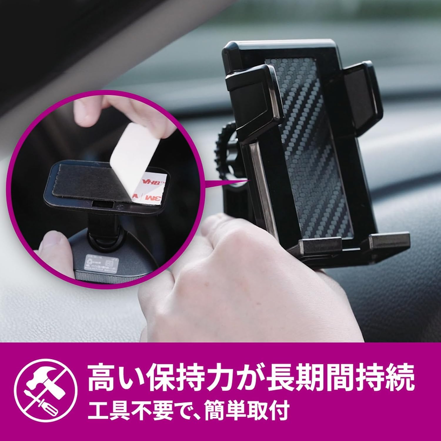 【車内の小物をしっかり固定、振動に強い超強力両面テープ! 】高品質な両面テープで、凸凹面やエンボス面があるダッシュボードにしっかり密着します。振動にも強く、固定した小物やアクセサリーが外れる心配がありません!
