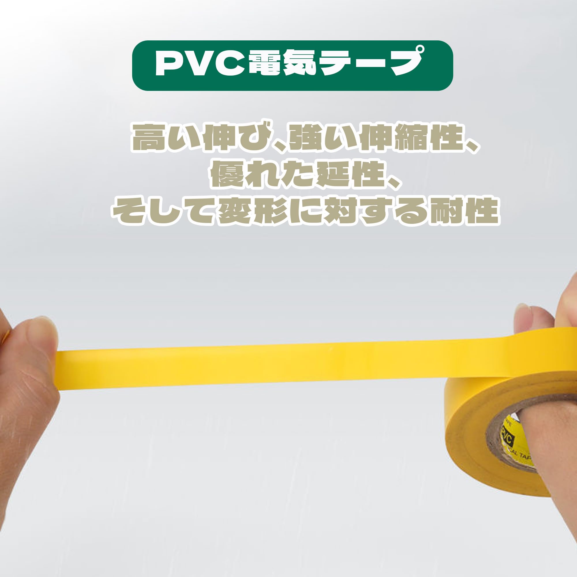 【高品質素材】この 電気絶縁テープ はPVC素材を使用しており、優れた電気絶縁性、耐熱性、耐候性を持ち、難燃性も備えています。柔軟性が高く、防水性能にも優れ、腐食にも耐えるため、長期間使用しても簡単に損傷することはありません。