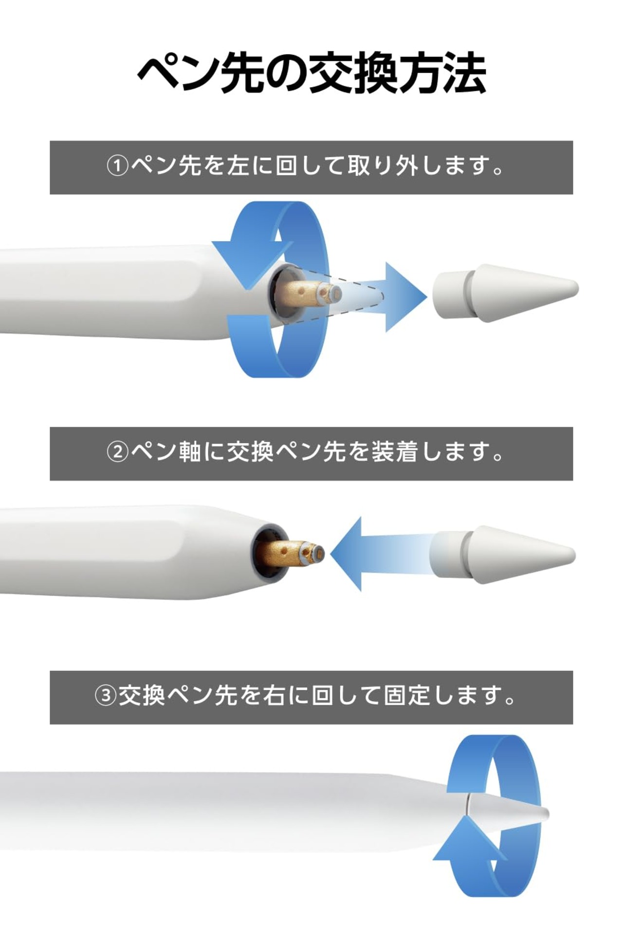 【新着】エレコム Apple Pencil ペン先 交換用 アップルペンシル タッチペン 樹脂製 3個入り 【 Apple Pencil 第1世代/第2世代/USB-C 対応 】 漫画やイラスト制作にも使用できるスリムタイプ PWTIPAPS01WH | GIGATERA