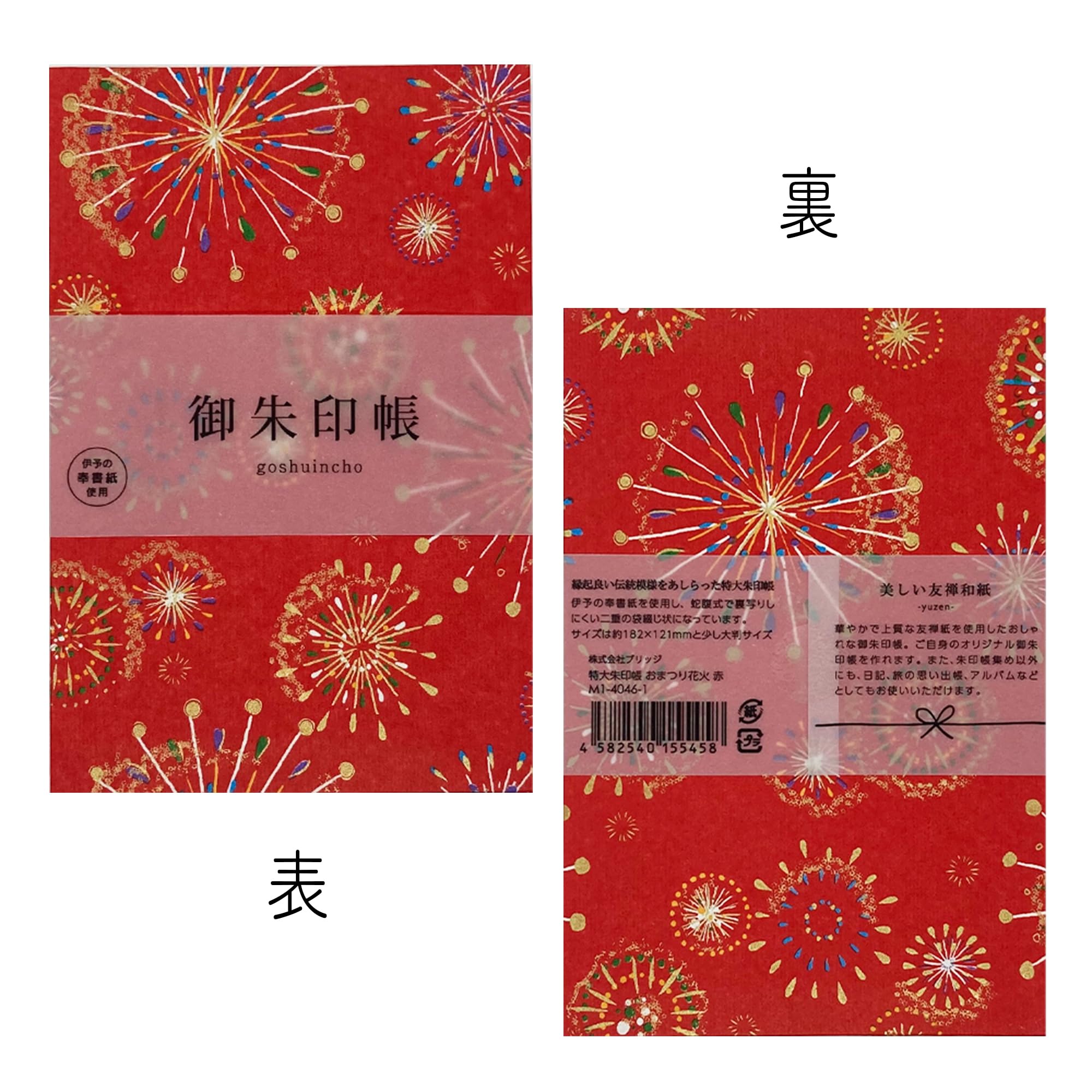 (Bridgehappy) 御朱印帳 御城印 集印帳 御朱印 大判 182×121mm 蛇腹 両面48頁 (おまつり花火赤)
