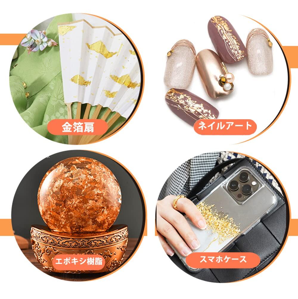 【多用途】これらの模造金シートは、芸術作品、家具、額縁、スライム、釘、目、絵画、インテリアデザインなど、さまざまな用途に使用できます。 結婚式、成人式、卒園式、卒業式、入園、入学式、七五三、和装、ピアノの発表会などでの金箔ヘアにおススメです。