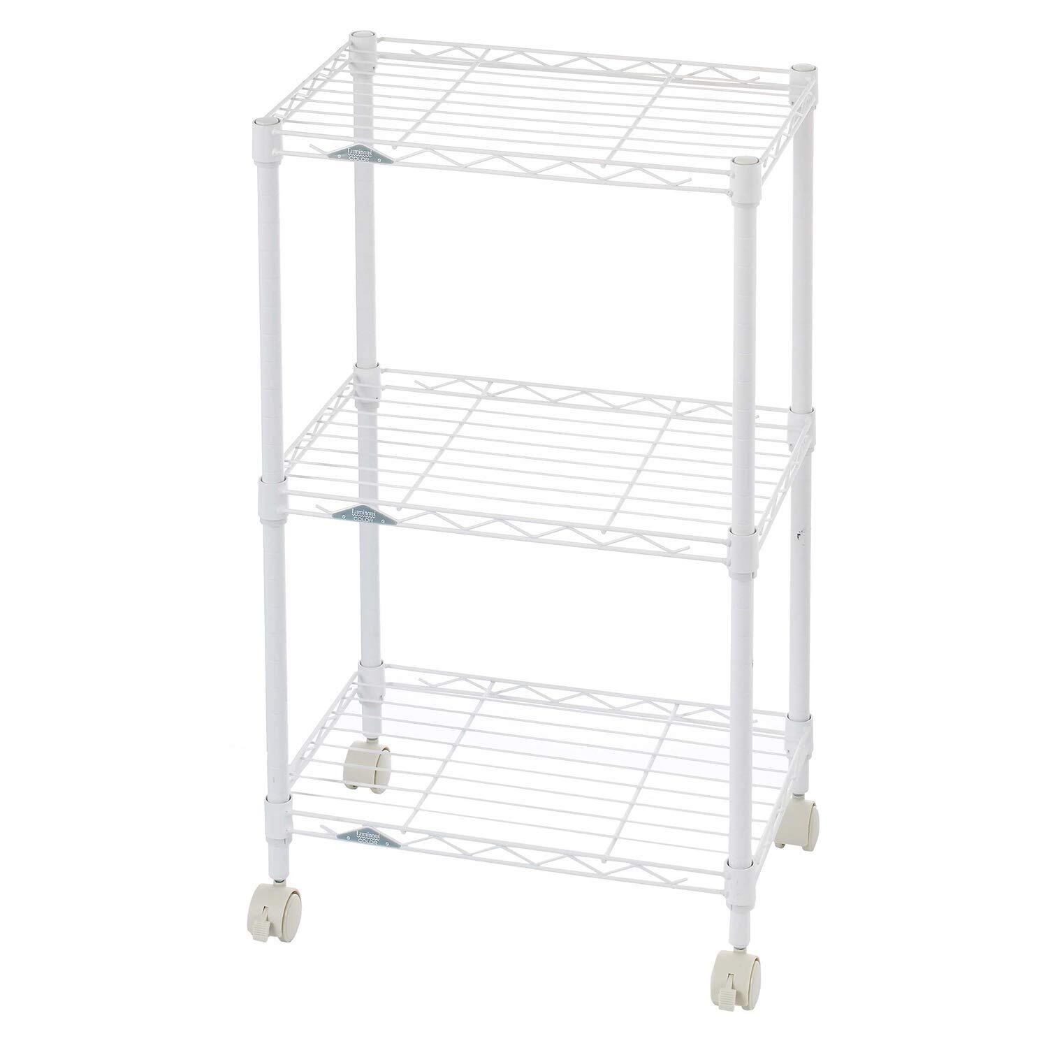 ドウシシャ ルミナス カラーラック ホワイト 3段 幅45 スリム オシャレでかわいい スチールラック 棚 収納 全体耐荷重90kg キャスター付き ポール径19mm 幅45.5×奥行29.5×高さ76 キッチン ランドリー 押し入れ LCR45-3WH