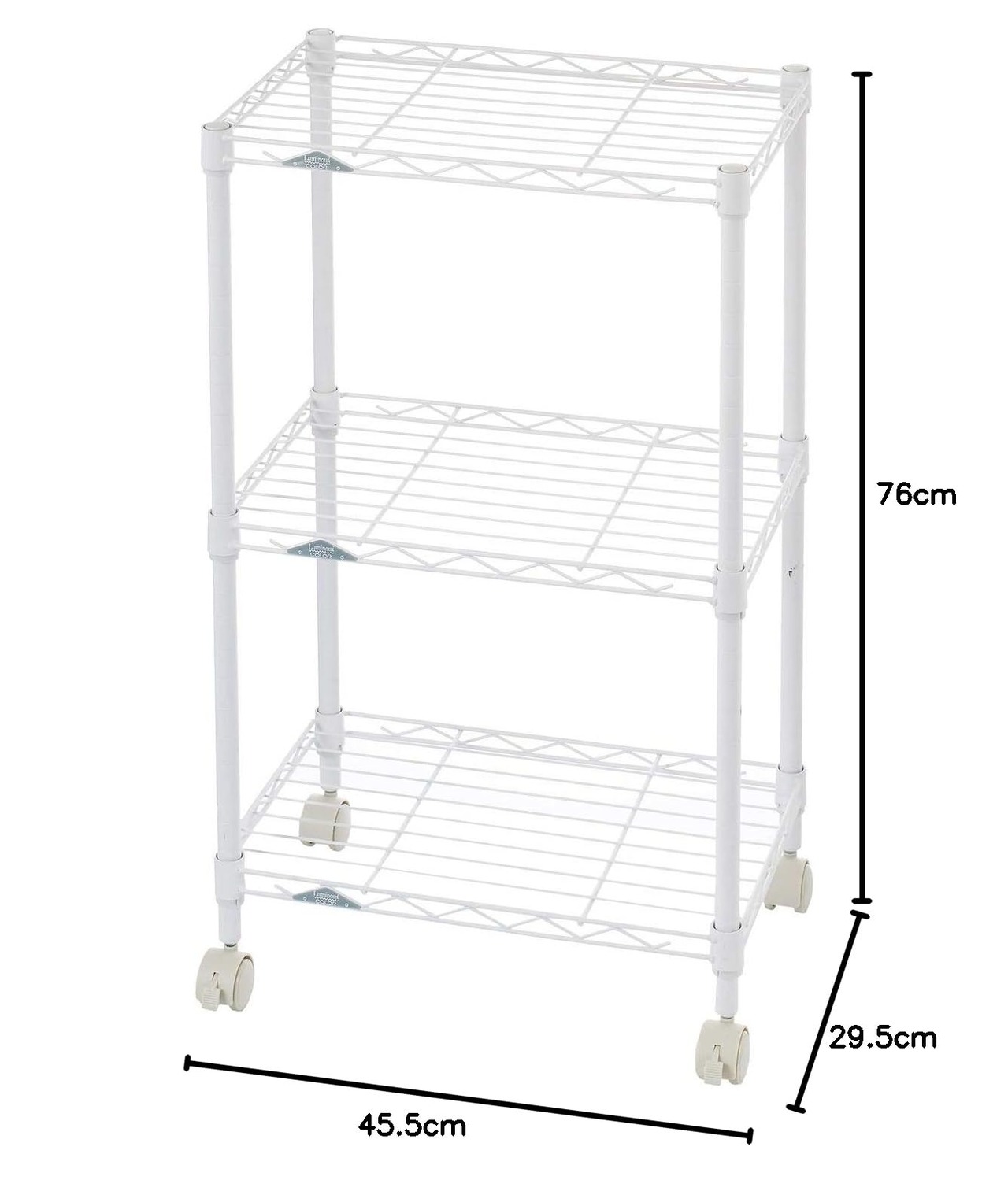 【セール】ドウシシャ ルミナス カラーラック ホワイト 3段 幅45 スリム オシャレでかわいい スチールラック 棚 収納 全体耐荷重90kg キャスター付き ポール径19mm 幅45.5×奥行29.5×高さ76 キッチン ランドリー 押し入れ LCR45-3WH | GIGATERA