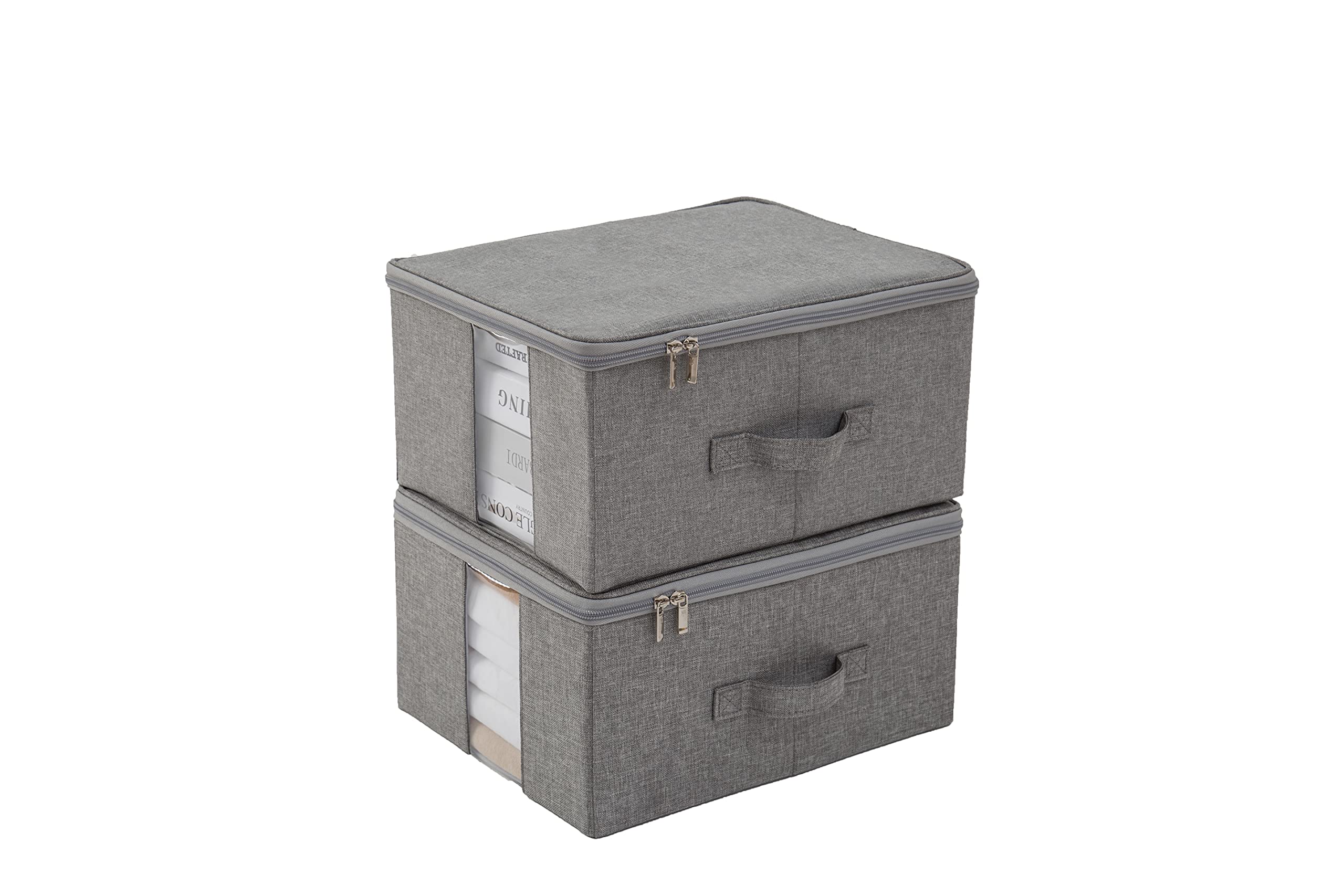 tianzong収納ボックス 収納ケース 大容量 衣類収納 ふた付き 折りたたみ 取っ手付き おしゃれ 布製 衣装ケース 透明窓付き ファスナー (グレー, 収納ボックス S*2)