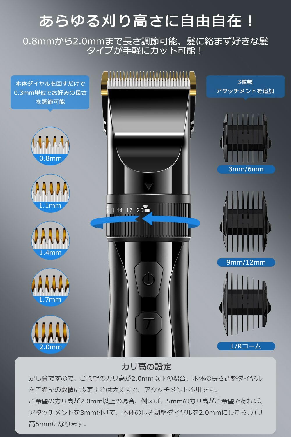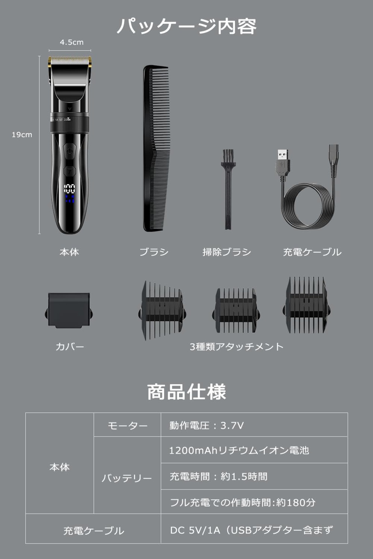 【人気】バリカン メンズ 【新登場 Type-C充電式】 ヘアーカッター 電動バリカン 5段階刈り高さ調節 3段階スピード LCDディスプレイ 大容量バッテリー 自動研磨 3種類ガイドコーム 低騒音 コードレス ばりかん子供 家庭用 散髪用 業務用 セルフカット 坊主 ツーブロック 軽量 | GIGATERA