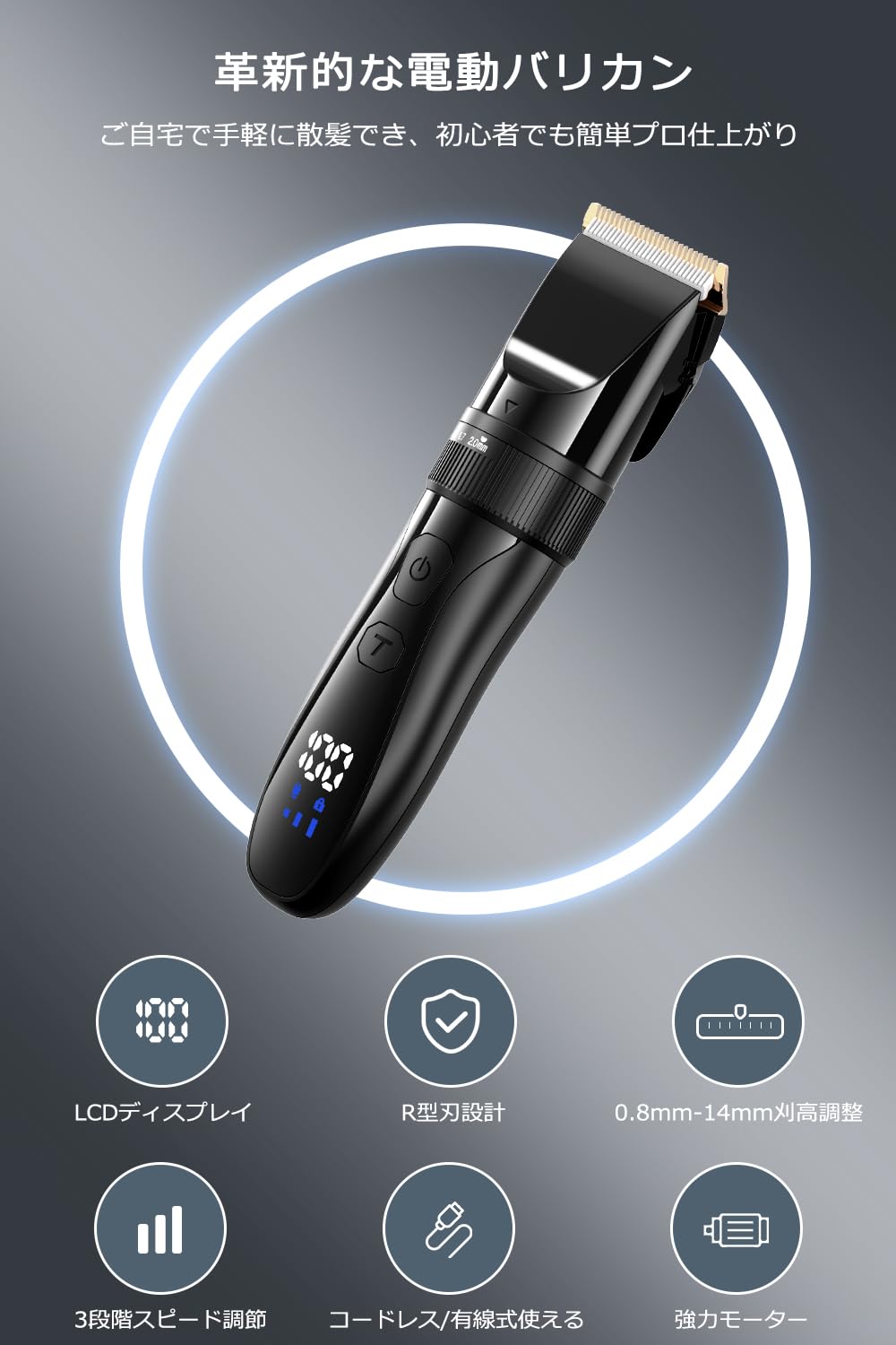 バリカン メンズ 【新登場 Type-C充電式】 ヘアーカッター 電動バリカン 5段階刈り高さ調節 3段階スピード LCDディスプレイ 大容量バッテリー 自動研磨 3種類ガイドコーム 低騒音 コードレス ばりかん子供 家庭用 散髪用 業務用 セルフカット 坊主 ツーブロック 軽量