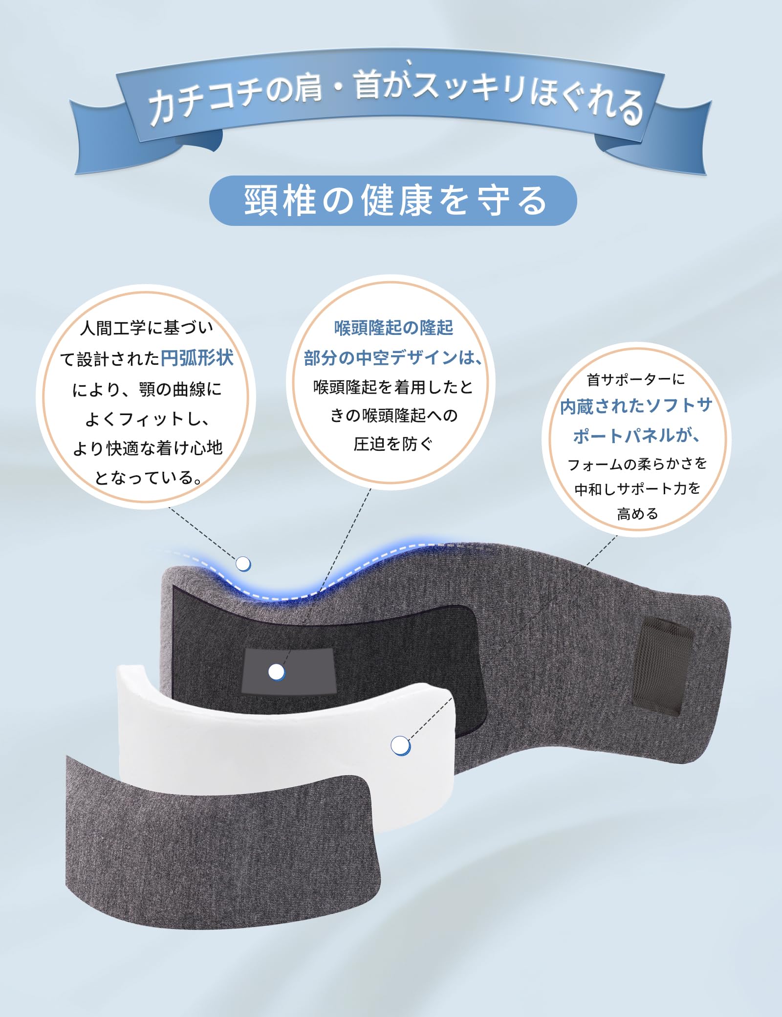 パソコンやスマートフォンを頻繁に使用するこの時代において、首にかかる負担はますます大きくなり、本製品は、このような現代の状況に特化して設計されました。