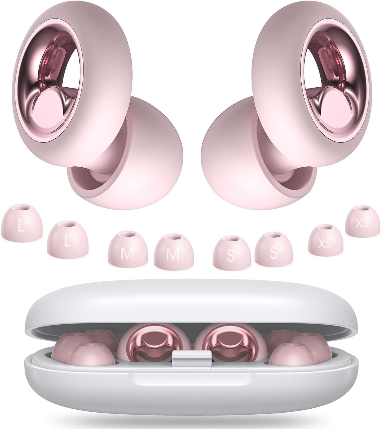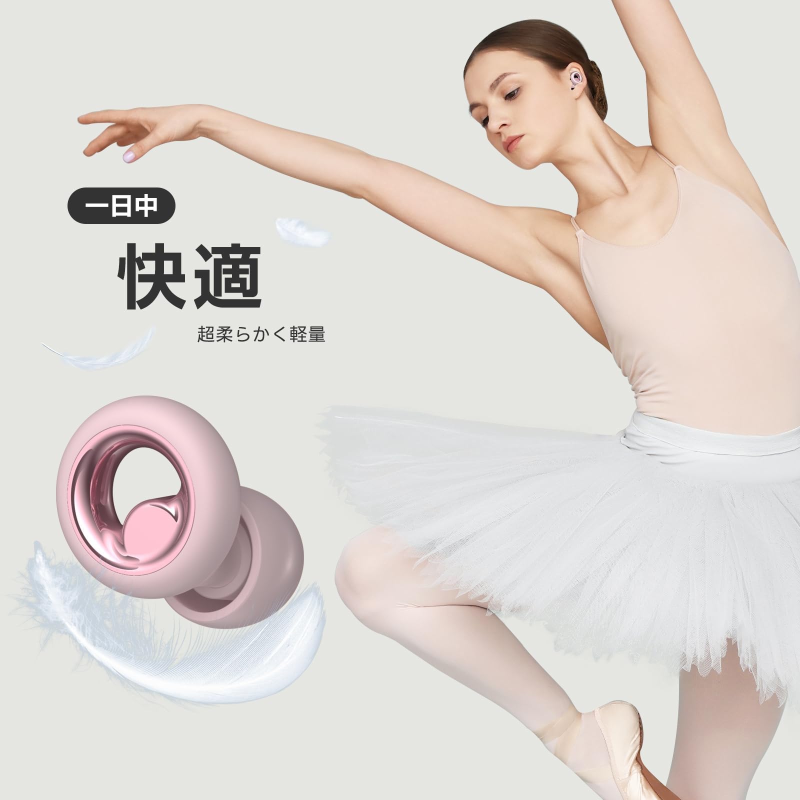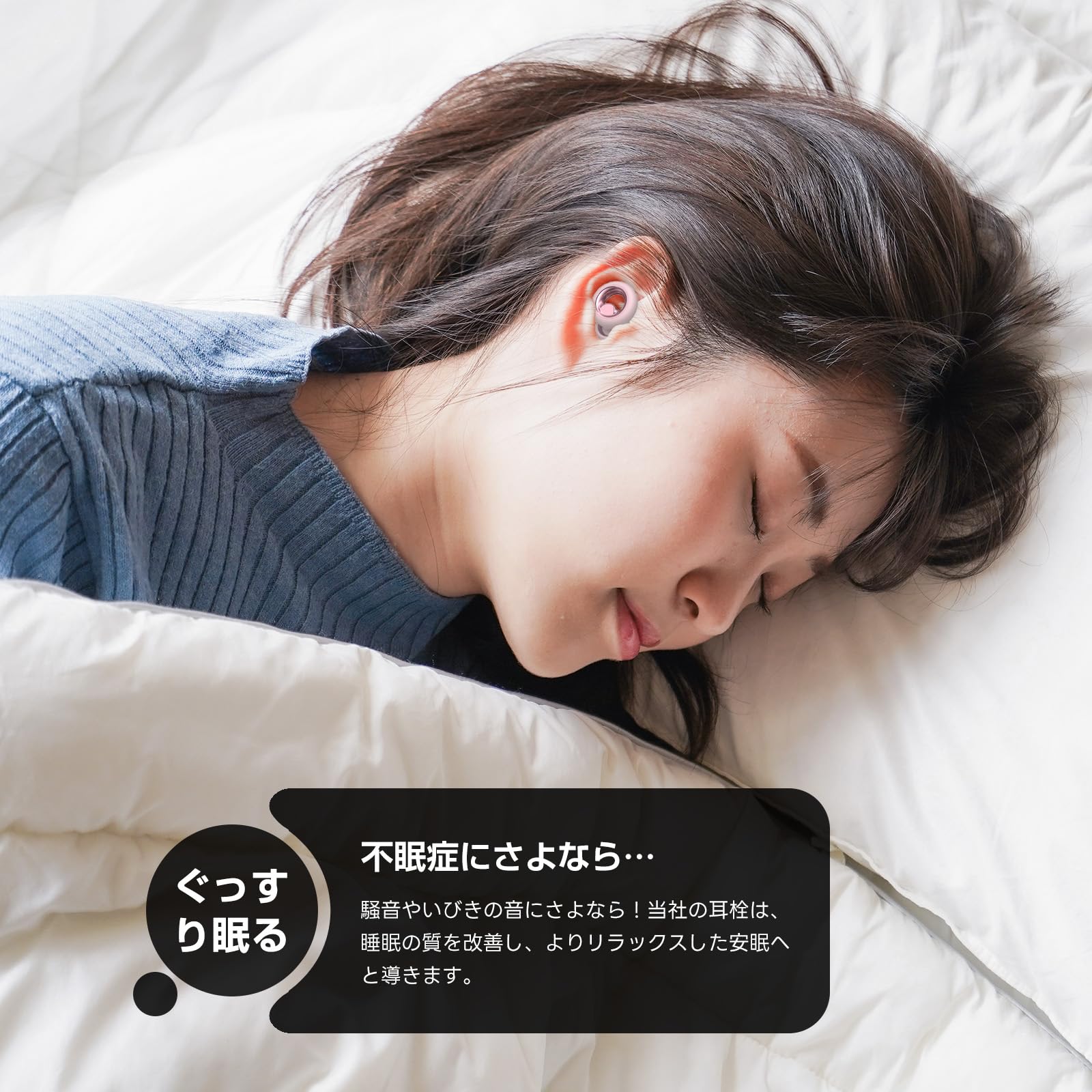 耳栓 睡眠用 ノイズキャンセリング 完全遮音 快眠 安眠グッズ 騒音対策 リラックス 聴覚プロテクション 45db低減 飛行機 勉強 いびき遮断 旅行 ライブ 仕事用 イヤチップ シリコン製 水洗い可能 男女兼用 収納ポーチ付 (ピンク )