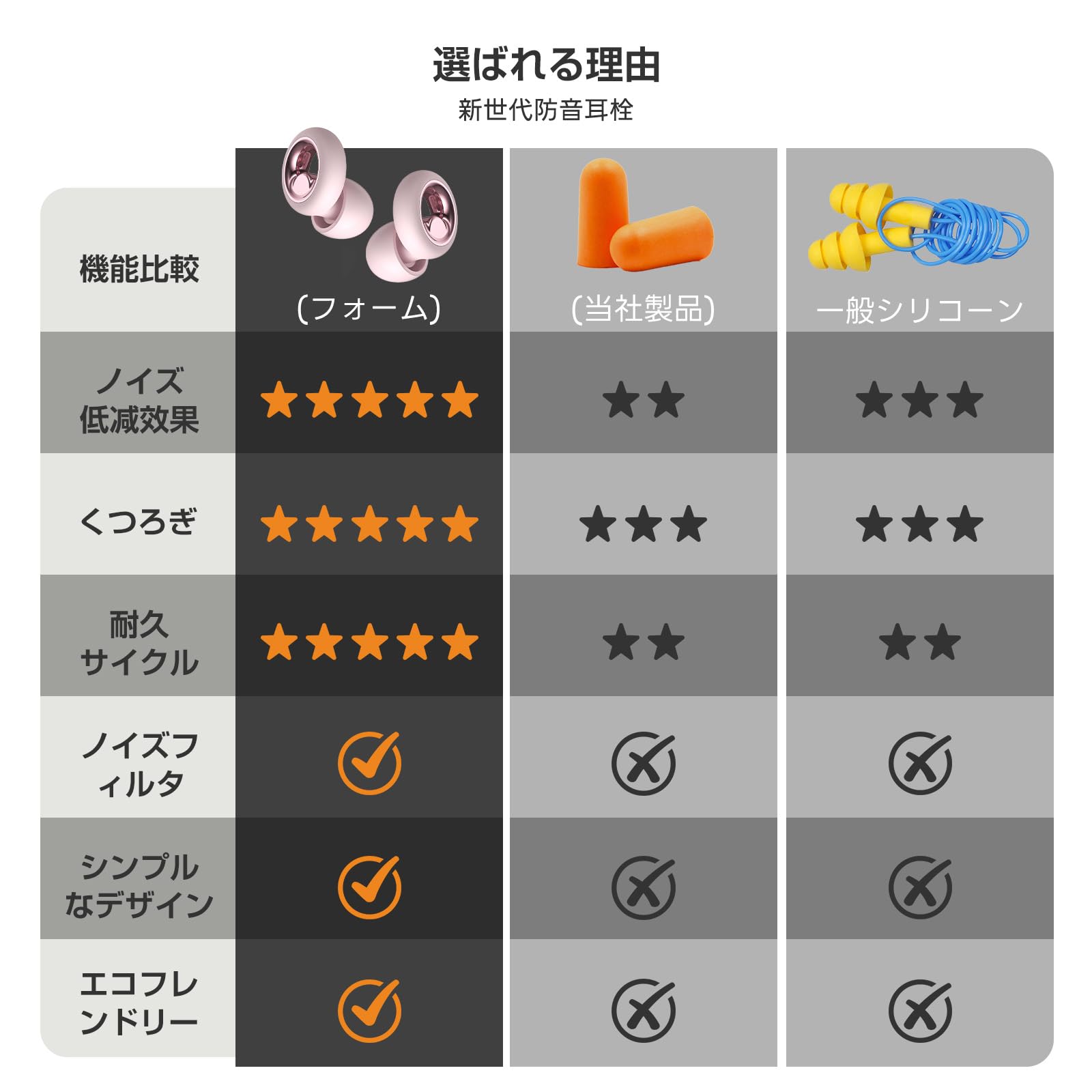 【45dBの優れたノイズキャンセリング、95%の騒音除去】VAKARIA 睡眠用耳栓は、複数層の防音構造と高密度吸音材料を採用し、精密に設計されたシーリング形状と流線型の輪郭と組み合わせて、最大45dBの騒音を効果的に遮断します。騒がしい飛行機の中、賑やかなオフィス、夜間のパートナーのいびき、活気のあるコンサート、静かな図書館で集中したいときなど、どんな状況でも、耳栓は静かな空間を提供し、あなたが集中して自分の世界に没頭できるようサポートします。