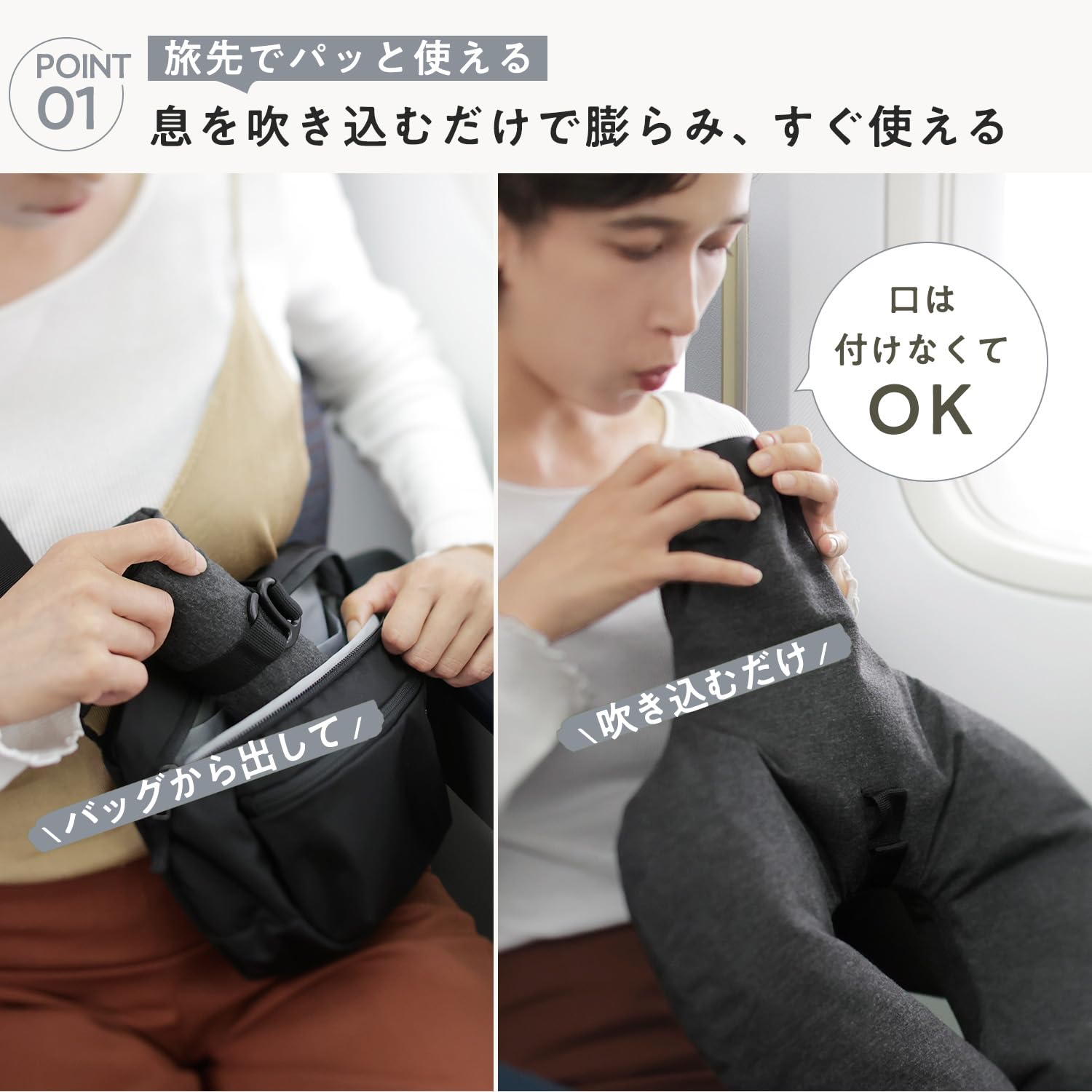 【発売開始から約2年半で累計15万個以上(※)】口をつけずに膨らみ、小さくたためるネックピロー。息を吹き込み、折り返し、フックを固定するだけですぐに使えます。首を包み込み、しっかり支えるかたち。空気の量で好みの固さに調整できます。※2023年2月〜2025年7月におけるfuu ネックピローの出荷ベース