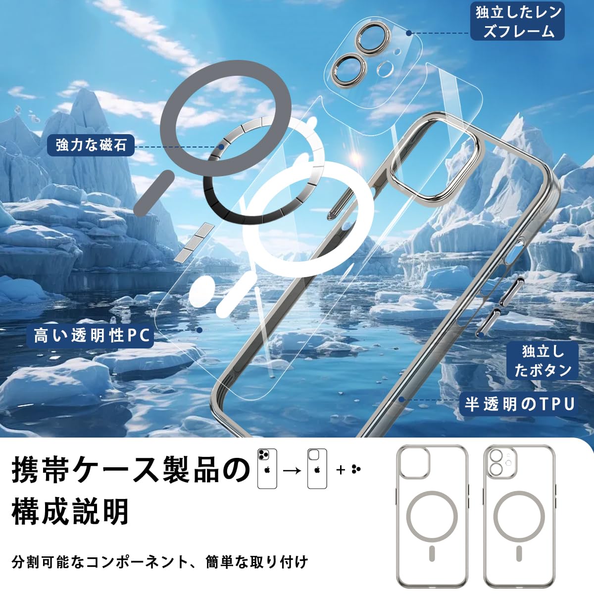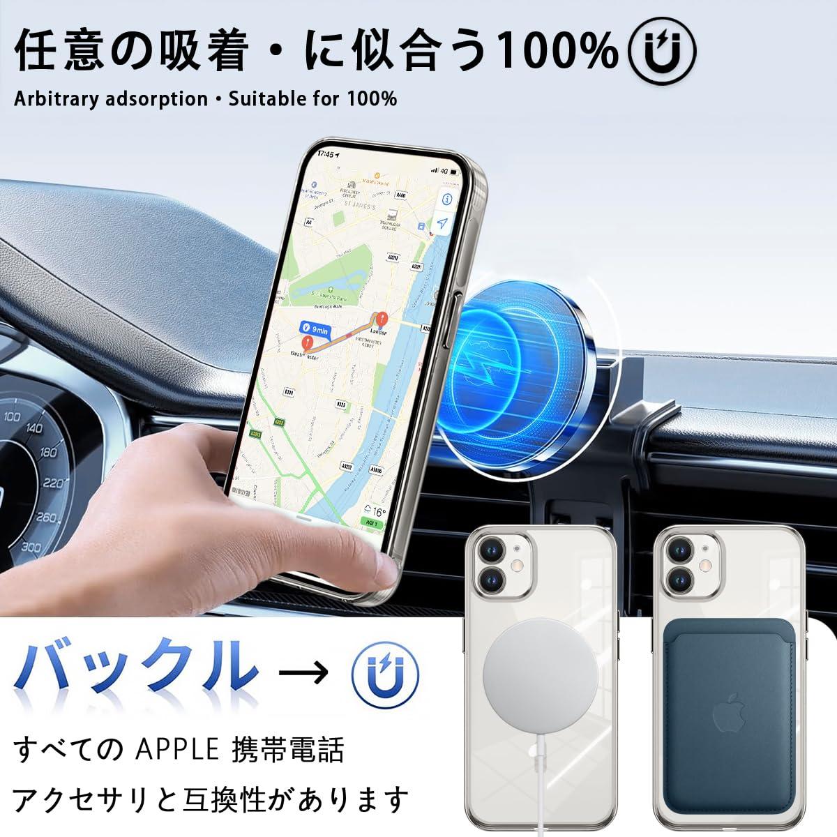 【強力な磁気吸着】ケース内部は38個強力なN52マグネットを搭載、超吸着能力でいくら振っても落ちない,すべてのMagSafeアクセサリーに対応できるクリアケースです,完璧に整列したマグネットにより、ワイヤレス充電がもっと速く、簡単になりました