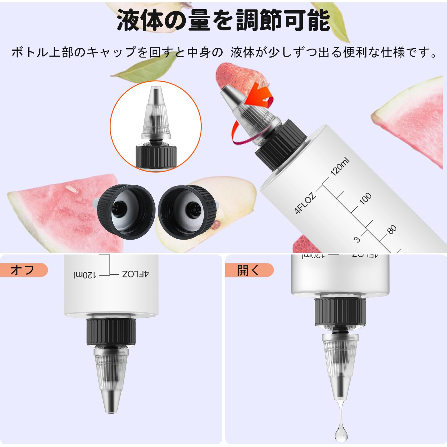 ?「使いやすい」ボトルの表面には、ずつに目盛りが刻まれており、注入量を確認しながら作業するのに便利です。容器の色は半透明です、 中の液体の色がはっきりとわかります。異なる色の接着剤や塗料を確認する必要がある場合は、この透明ボトルが最適です。